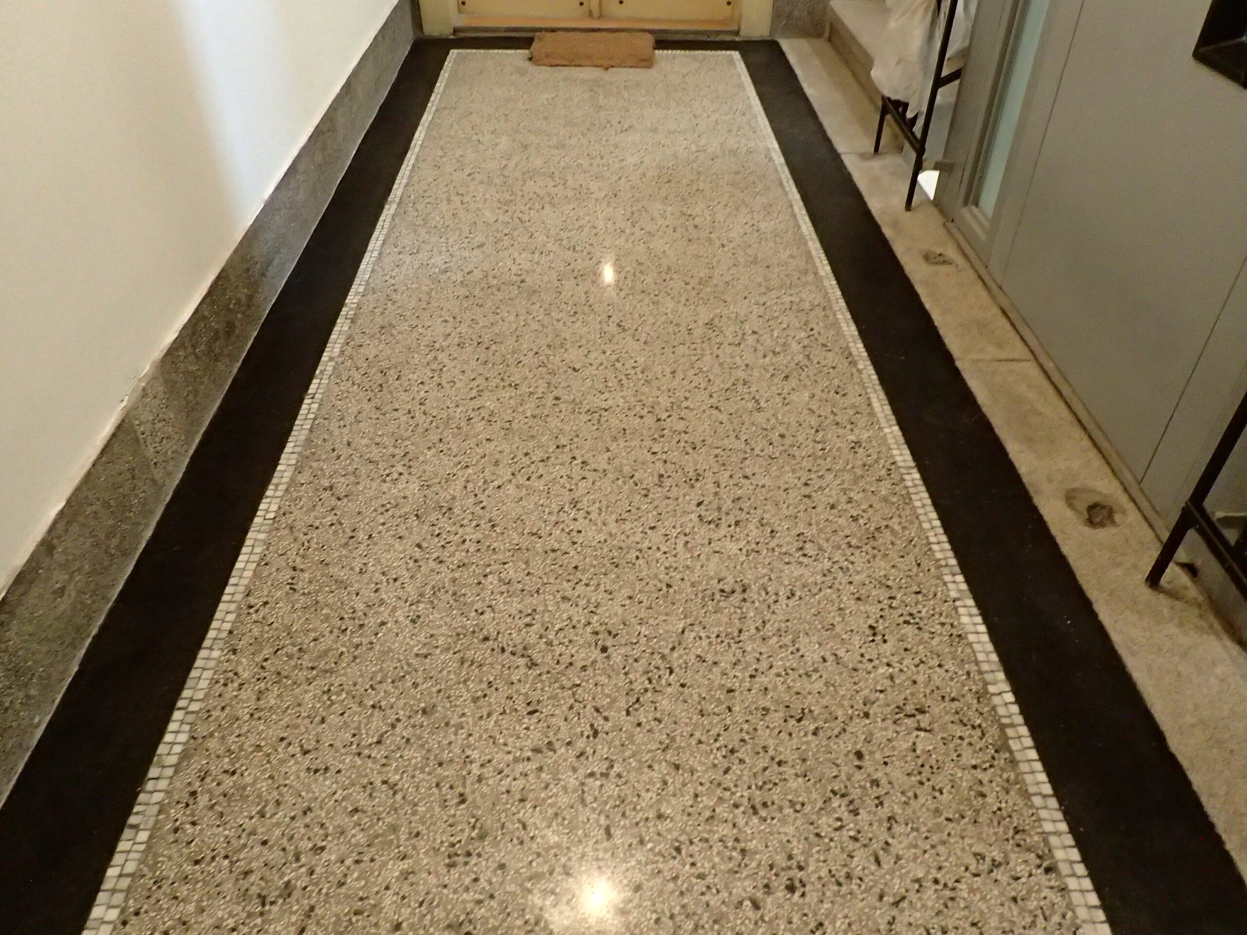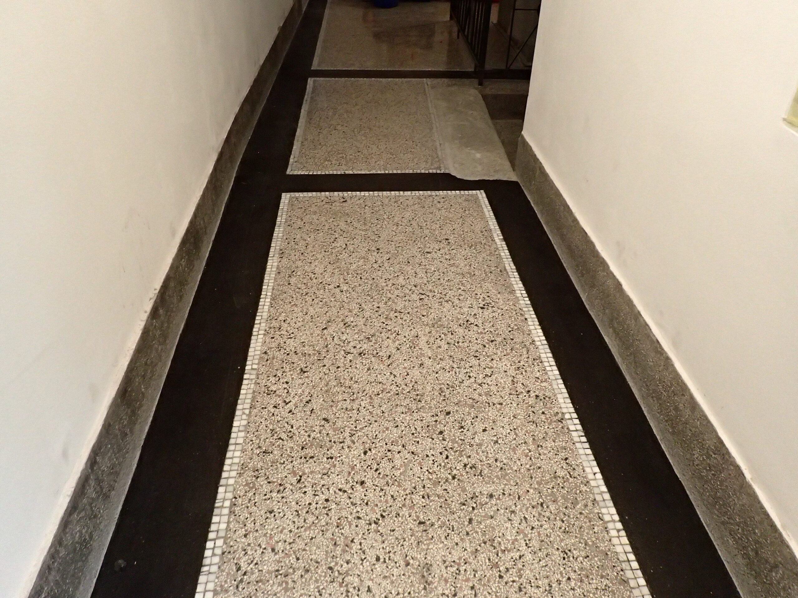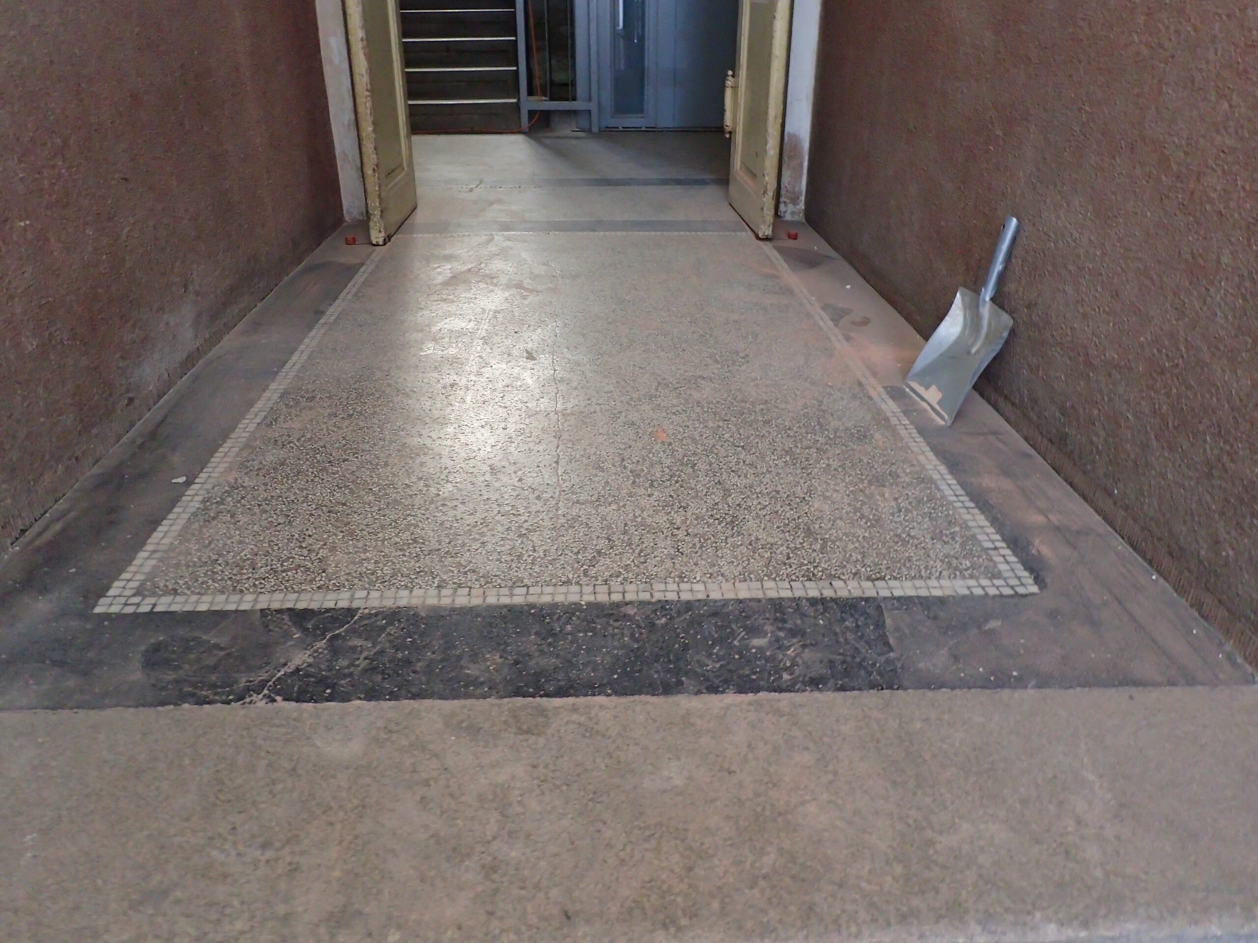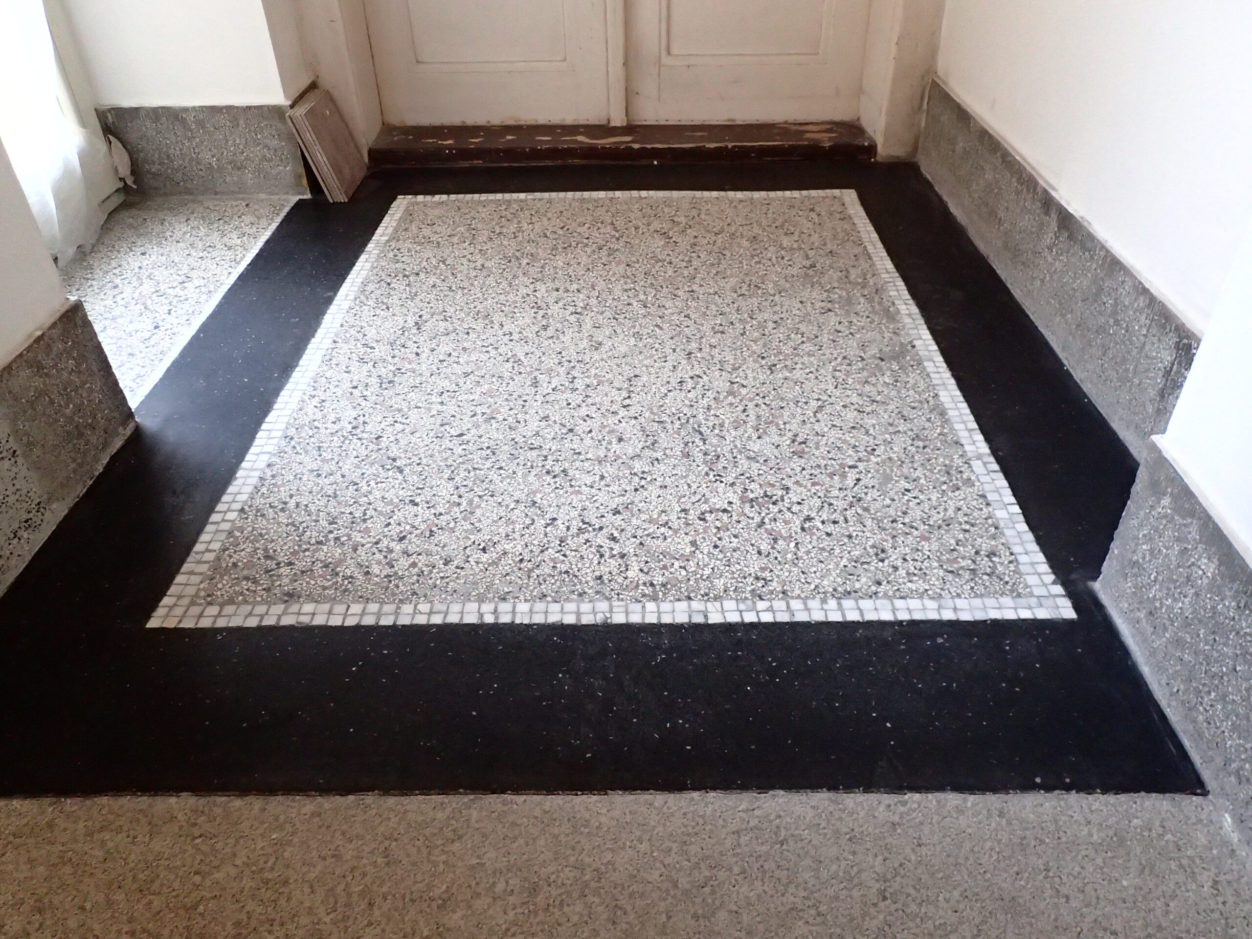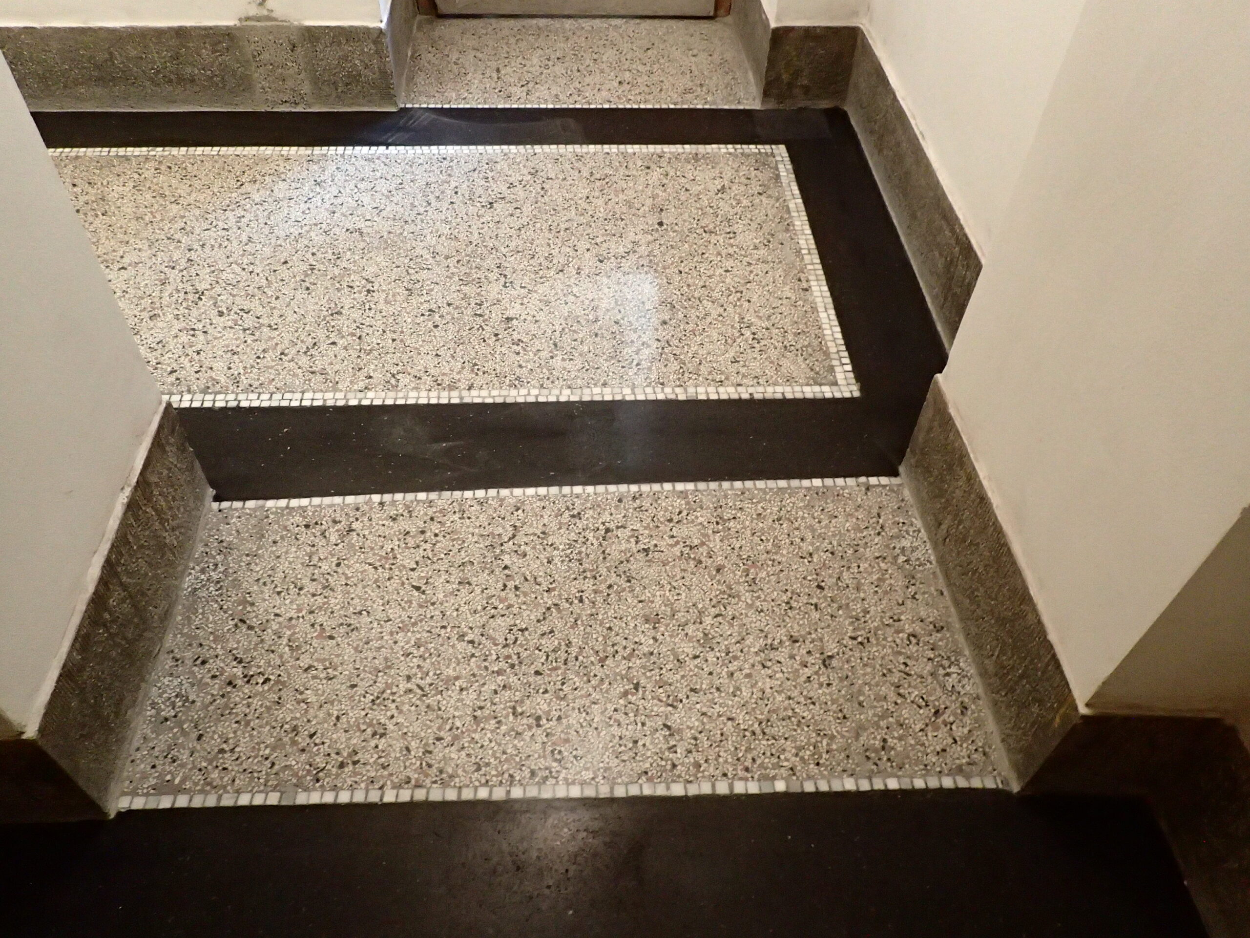 Pro SVJ Ondříčkova 9 v Praze 3 jsme zrealizovali kompletní vyčištění žulového schodiště včetně mechanického odstranění cementového nánosu a tak celkovou renovaci a opravy starého terasa. V rámci kompletní rekonstrukce domu jsme na její závěr byli požádáni o vyčištění žuly a renovaci terasa. Žulové schodiště bylo mimo klasické znečištění běžným provozem ještě silně znečištěno cementovým lepidlem především na stranách jednotlivých schodišťových stupňů. Po chemickém odstranění běžných nečistot jsme cementové nánosy odstranili jehličkovým oklepávačem a následně celý povrch dokonale odmastili. Po vyschnutí, byl žulový povrch zbavený zbytkové vlhkosti penetrován impregnací Bellinzoni Idea HP odolávající olejům a běžným kapalinám. Na jednotlivých patrech a mezaninech domu jsme sanovali terasový povrch ten následně vystěrkovali. Výtluky a díry po odstraněných plynových trubkách byly vyplněny odpovídající barevnou terasovou směsí. Ve vstupní části domy byly vyměněny části poškozených mramorových kostiček lemující černé bordury. Po vyleštění plochy terasa do zrcadlového lesku byla celá plocha impregnována impregnací Bellinzoni Idea. Na výsledek naší měsíční práce se můžete podívat v přiložené galerii.
