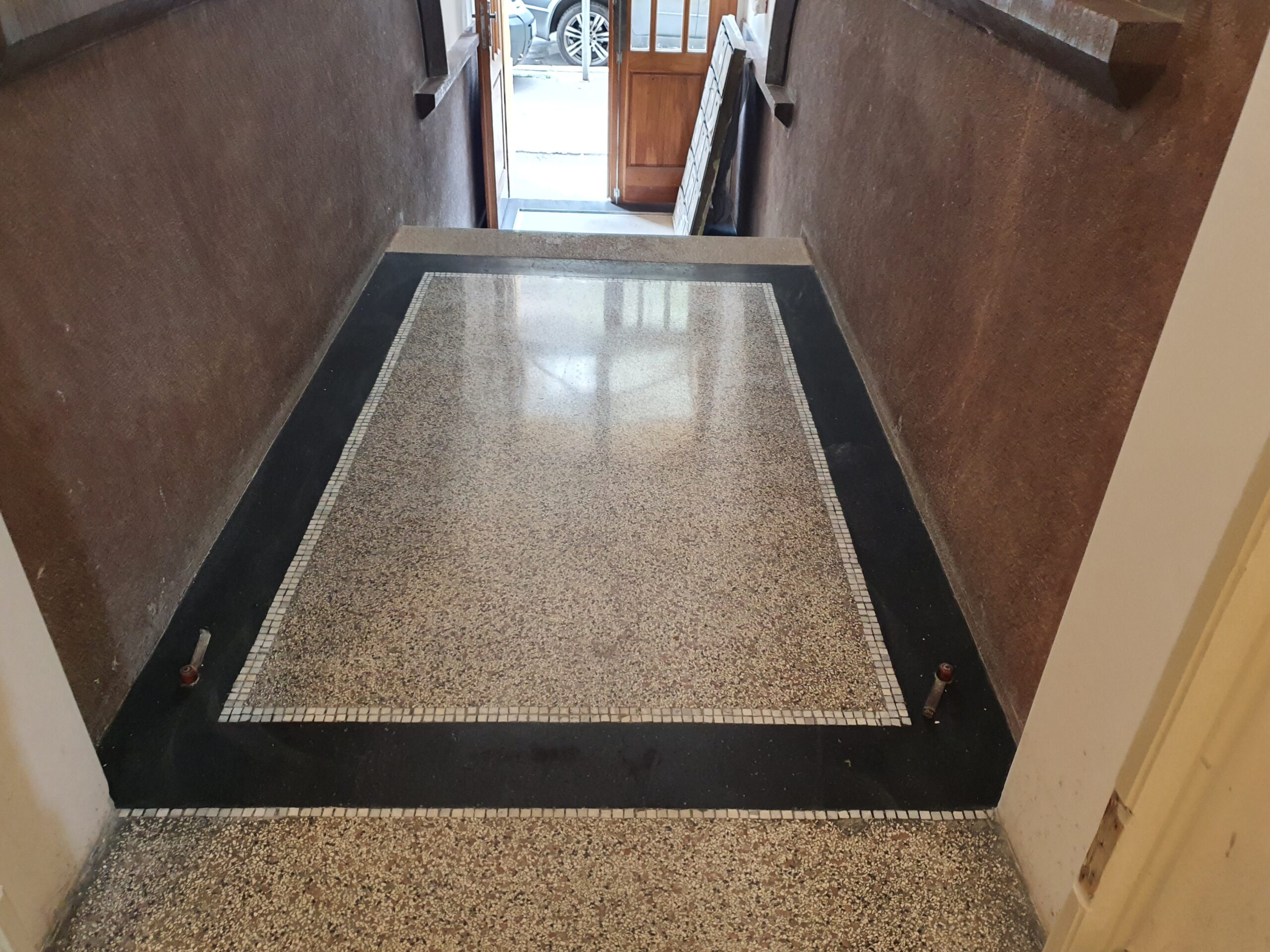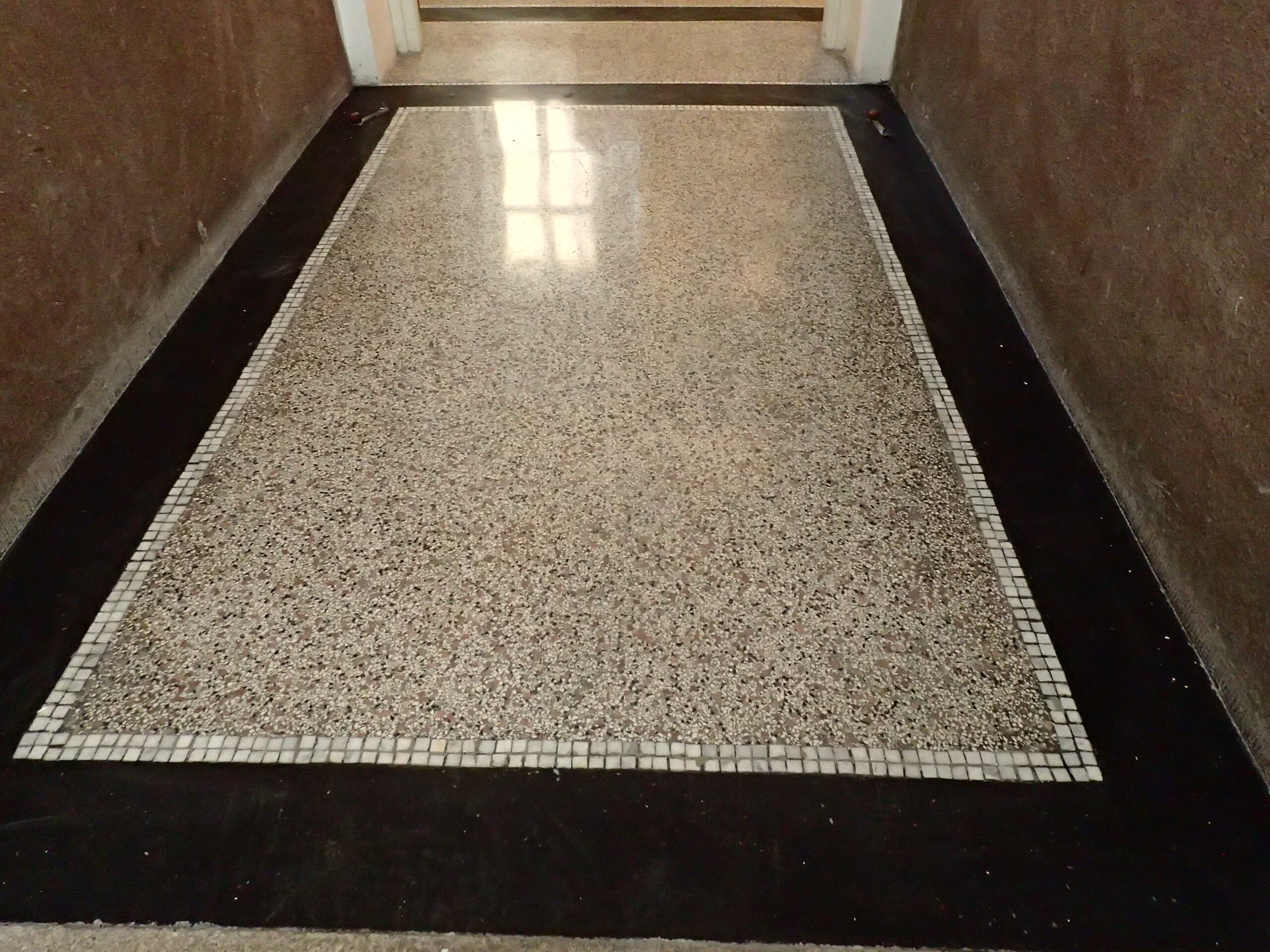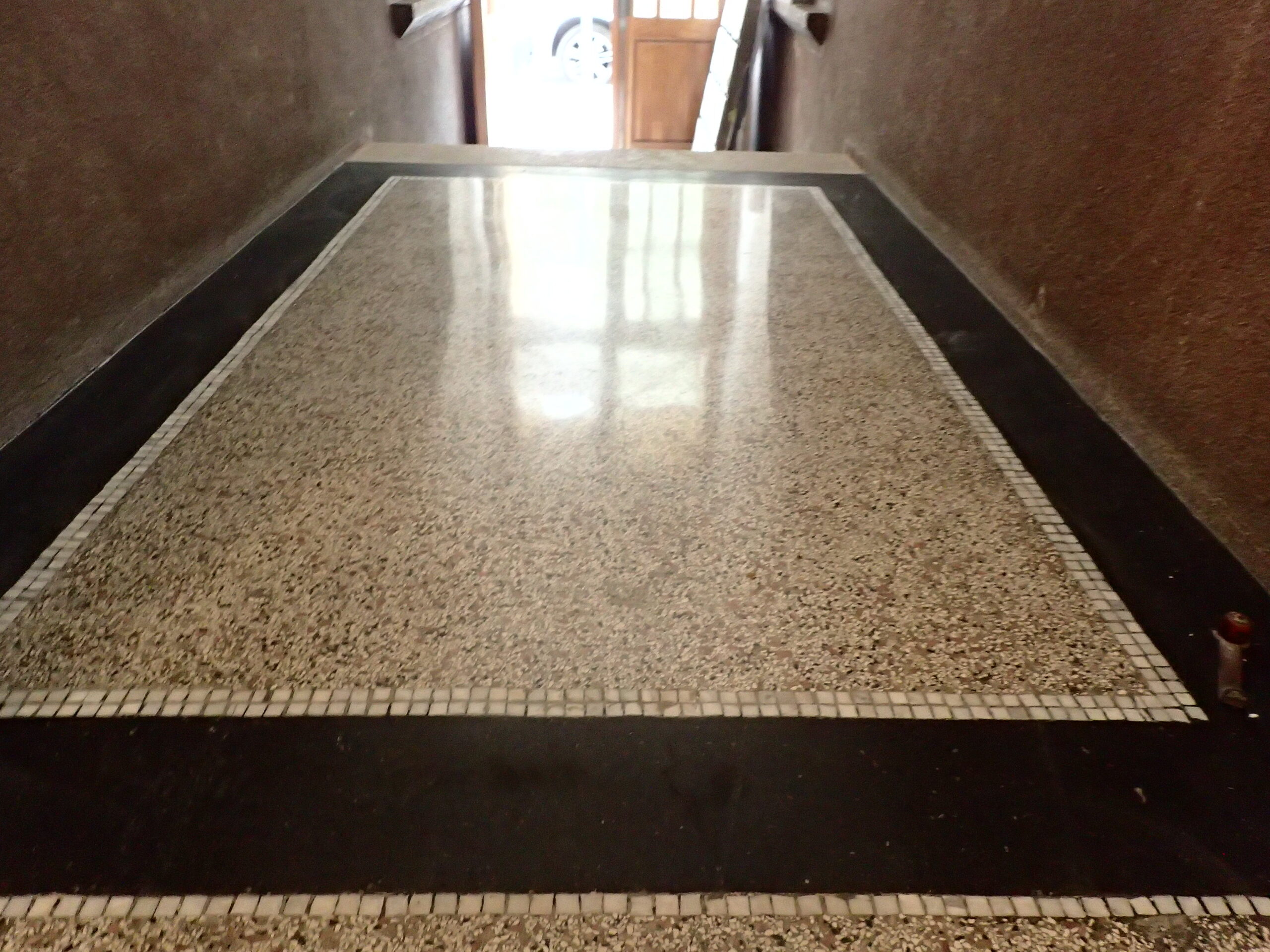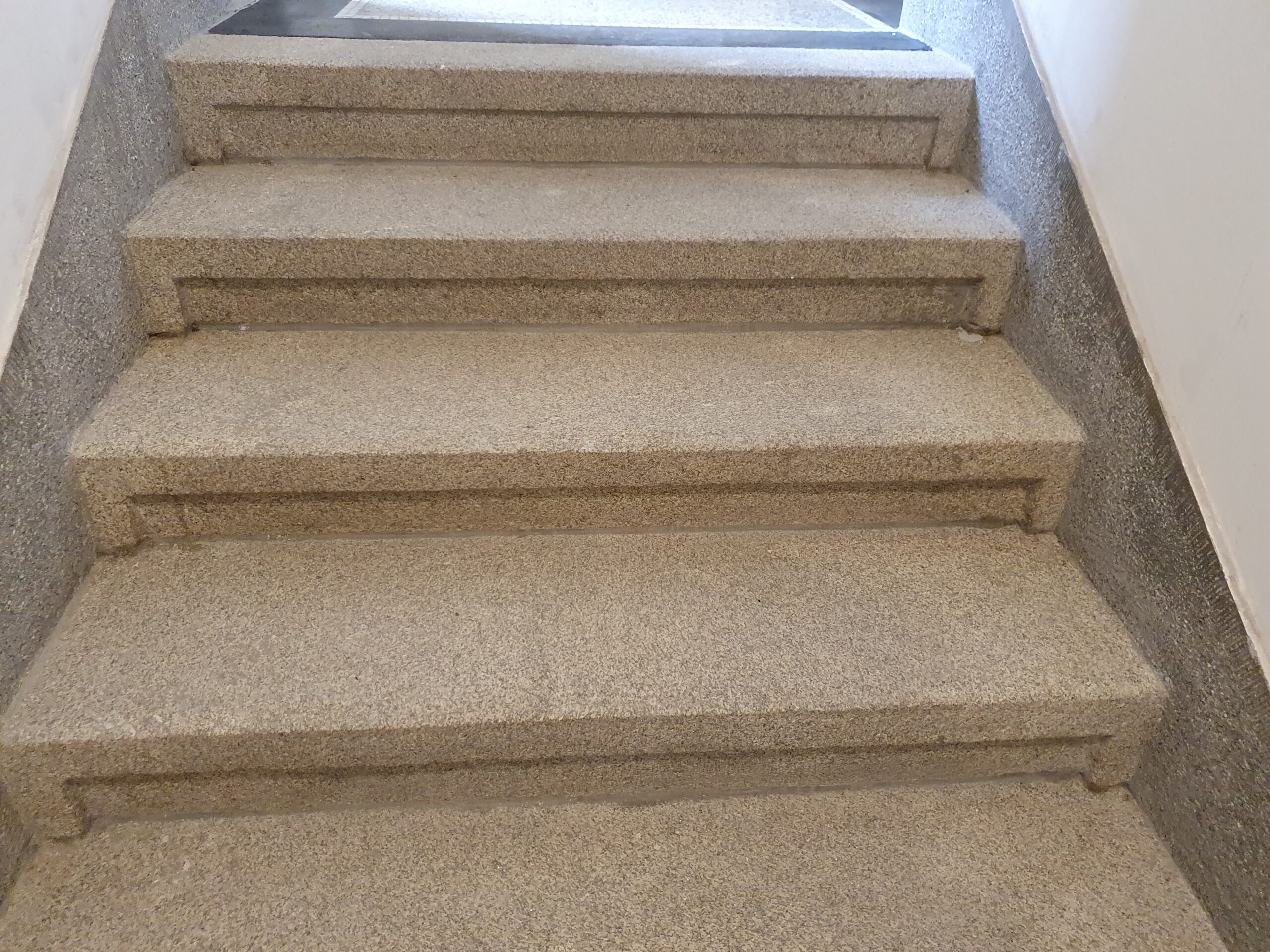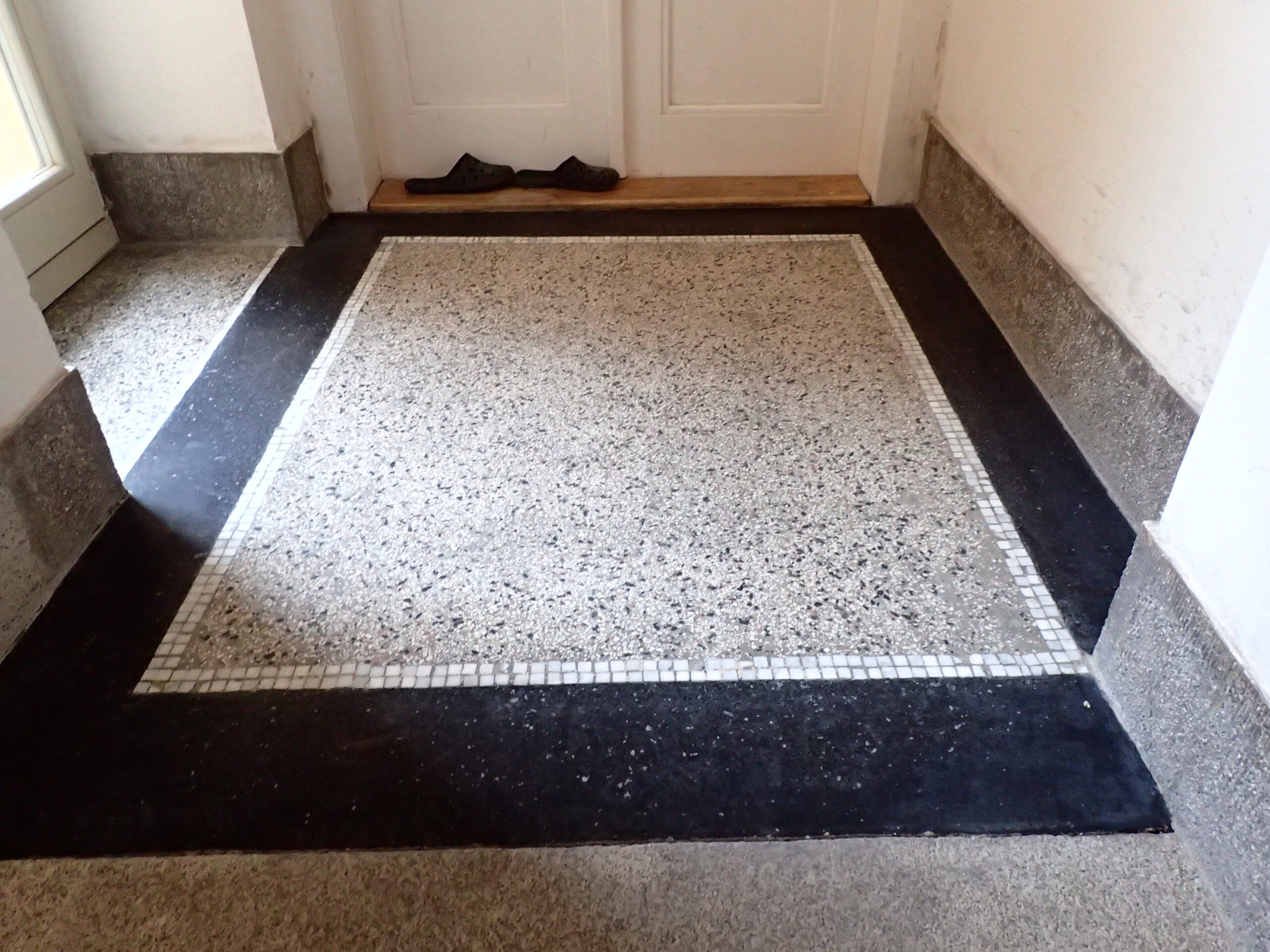 Pro SVJ Ondříčkova 9 v Praze 3 jsme zrealizovali kompletní vyčištění žulového schodiště včetně mechanického odstranění cementového nánosu a tak celkovou renovaci a opravy starého terasa. V rámci kompletní rekonstrukce domu jsme na její závěr byli požádáni o vyčištění žuly a renovaci terasa. Žulové schodiště bylo mimo klasické znečištění běžným provozem ještě silně znečištěno cementovým lepidlem především na stranách jednotlivých schodišťových stupňů. Po chemickém odstranění běžných nečistot jsme cementové nánosy odstranili jehličkovým oklepávačem a následně celý povrch dokonale odmastili. Po vyschnutí, byl žulový povrch zbavený zbytkové vlhkosti penetrován impregnací Bellinzoni Idea HP odolávající olejům a běžným kapalinám. Na jednotlivých patrech a mezaninech domu jsme sanovali terasový povrch ten následně vystěrkovali. Výtluky a díry po odstraněných plynových trubkách byly vyplněny odpovídající barevnou terasovou směsí. Ve vstupní části domy byly vyměněny části poškozených mramorových kostiček lemující černé bordury. Po vyleštění plochy terasa do zrcadlového lesku byla celá plocha impregnována impregnací Bellinzoni Idea. Na výsledek naší měsíční práce se můžete podívat v přiložené galerii.