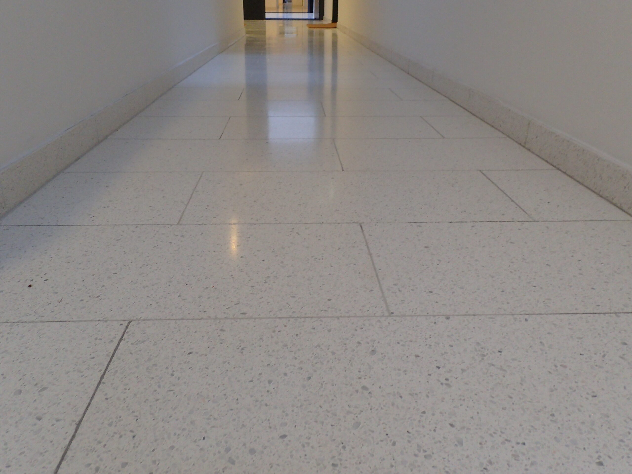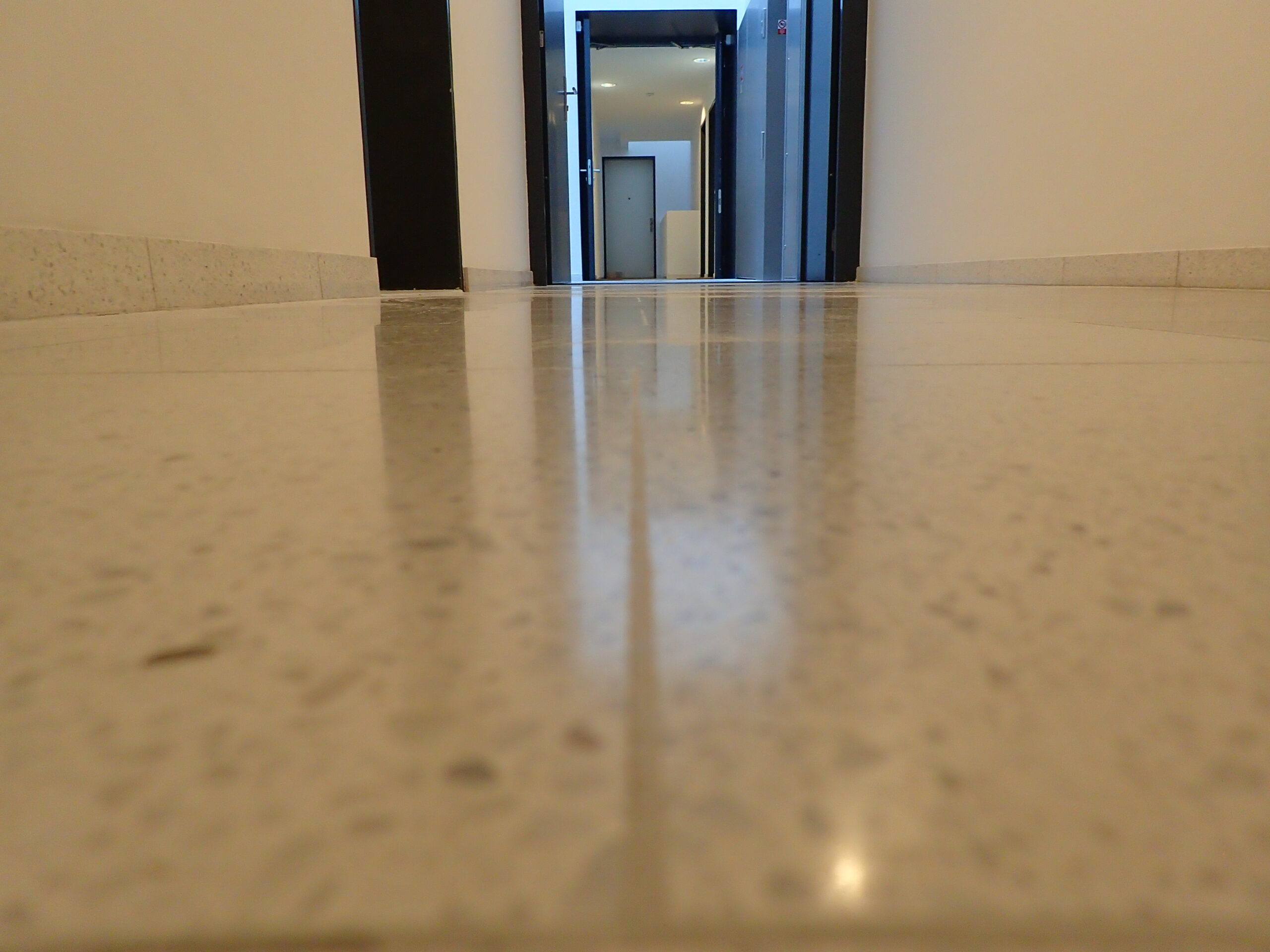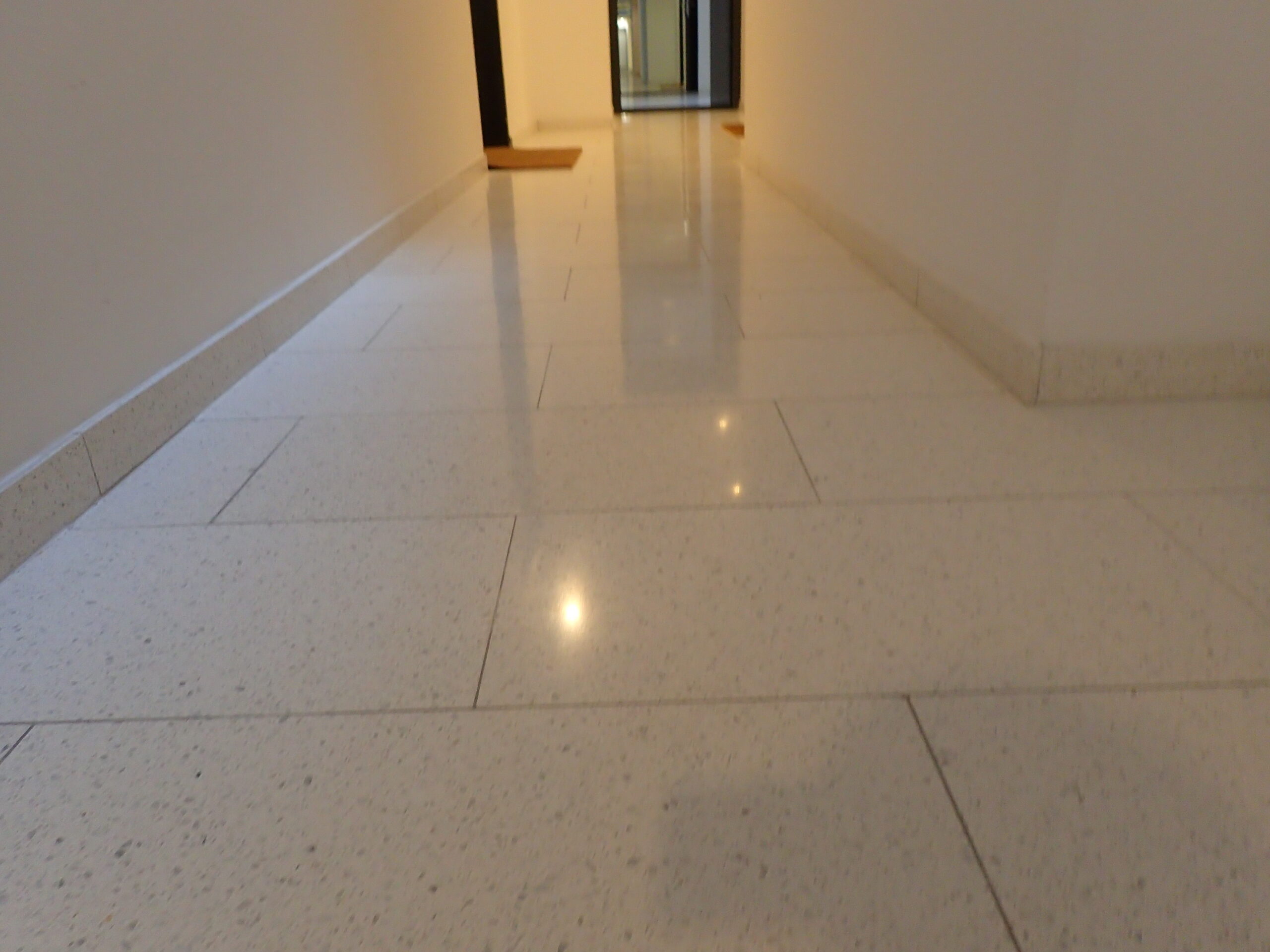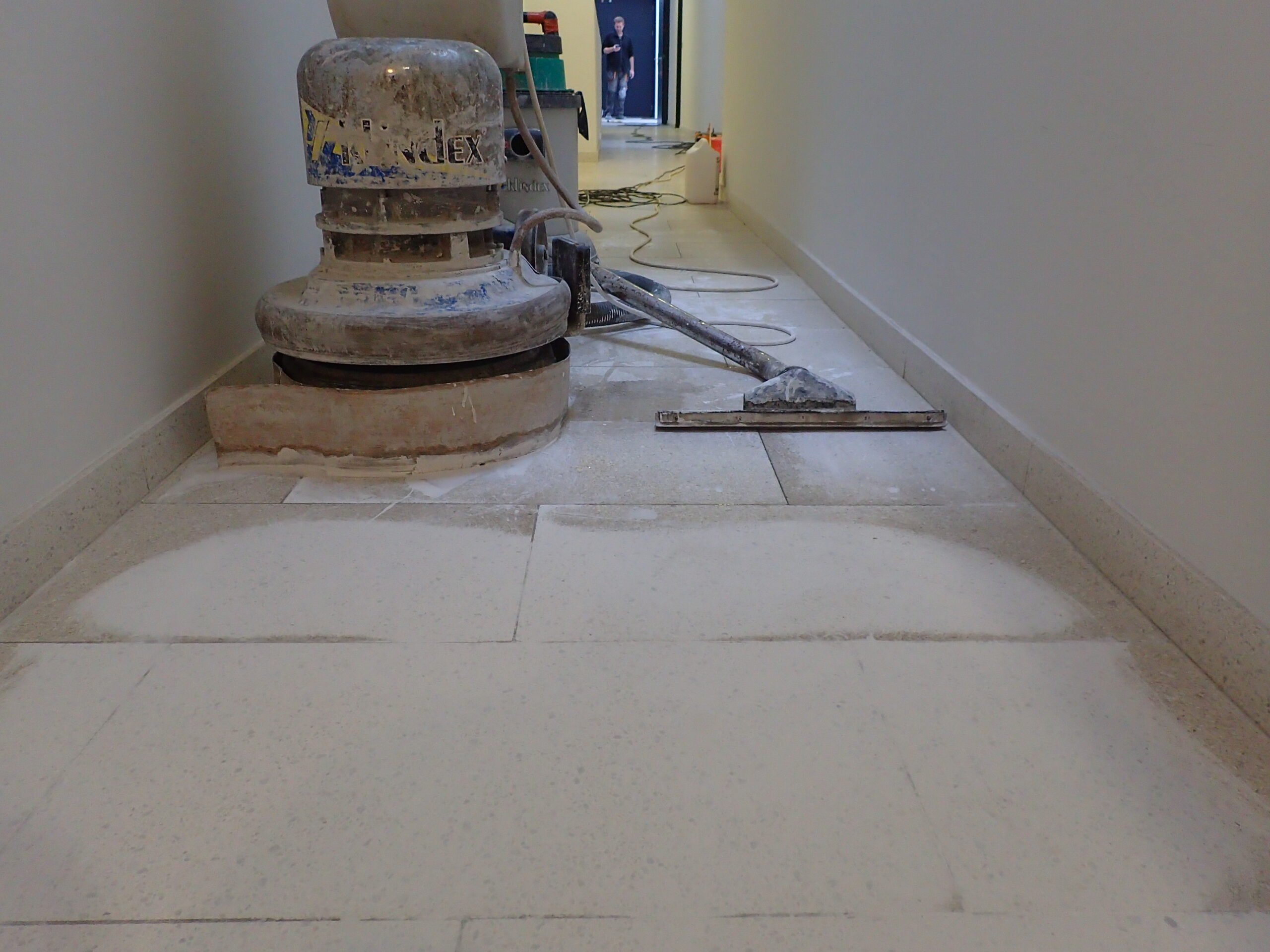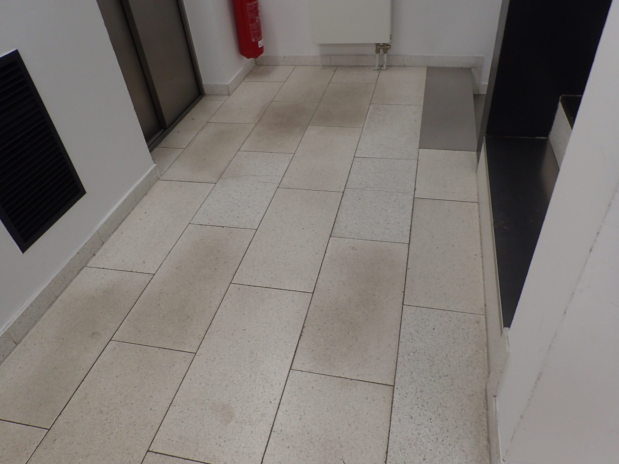 Pro SVJ Šaldova 1 jsme zrealizovali renovaci měkké teracove dlazby v celkové ploše 1200m2. Byli jsme osloveni správcovskou firmou ohledně možností renovace teracove dlažby v karlinskem bytovem domě která po pouhých 6 letech provozu vykazovala značné poškození povrchu a nerovnosti jednotlivých částí  teracové dlažby. Teracovou dlažbu bylo nutné nejdříve kompletně srovnat tak, aby všechny její části byly ve sté výšce. To bylo provedeno za pomoci diamantových segmentů a planetových brusek. Následně jsme pomocí planetových brusek Klindex a dimantových segmentů s odstupňovanou abrazivitou vyleštili povrch do požadovaného vysokého lesku. Po celkovém vyschnutí plochy jsme povrch opakovaně zpevňovali pomocí zpevňujícího vosků Bellinzoni Dural Max a Bellinzoni Dural Brill. Celá ošetřená plocha byla nakonec znovu rozleštěna pomocí diamantových padů. Výsledek je patrný v přiložené galerii.