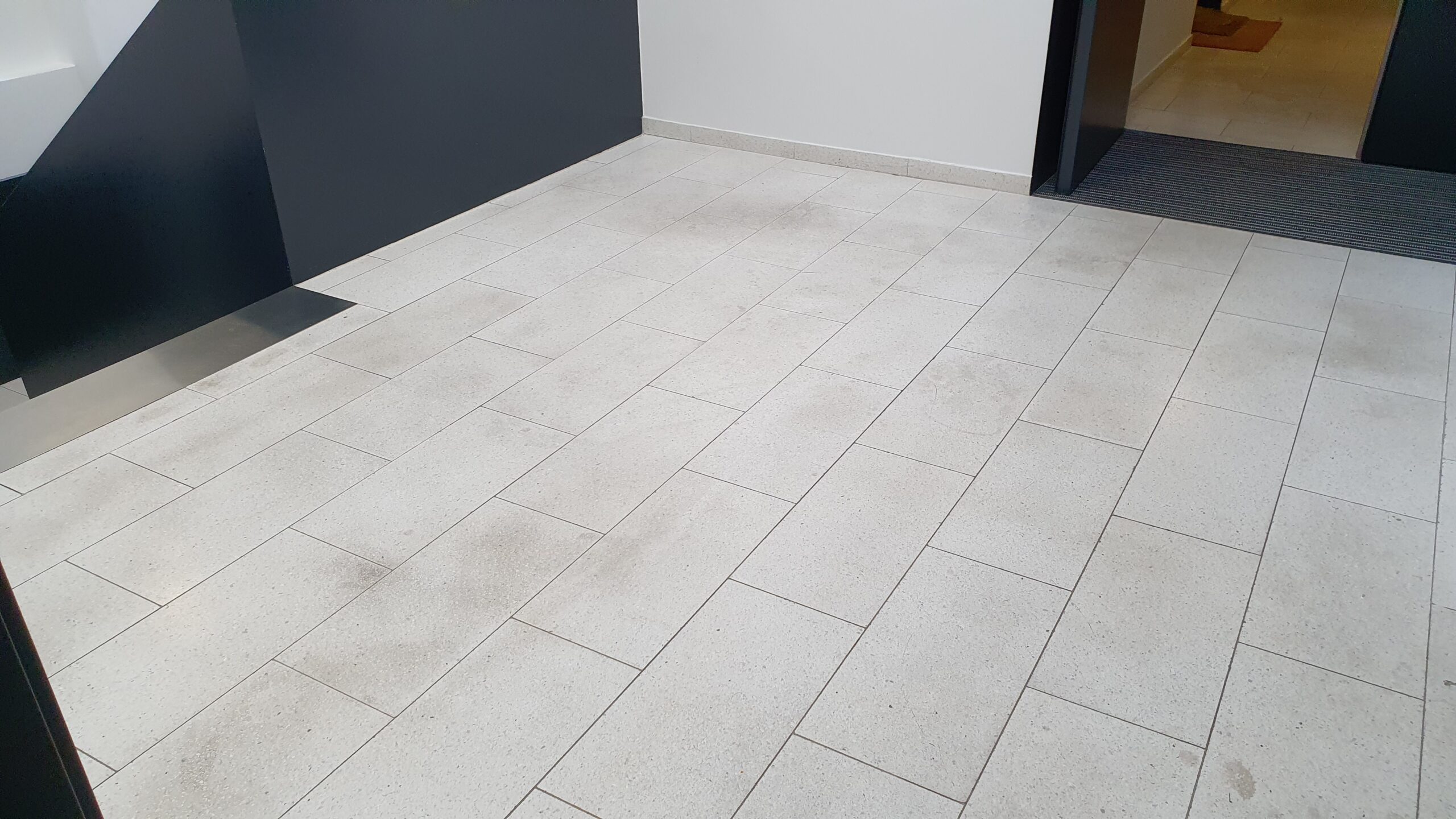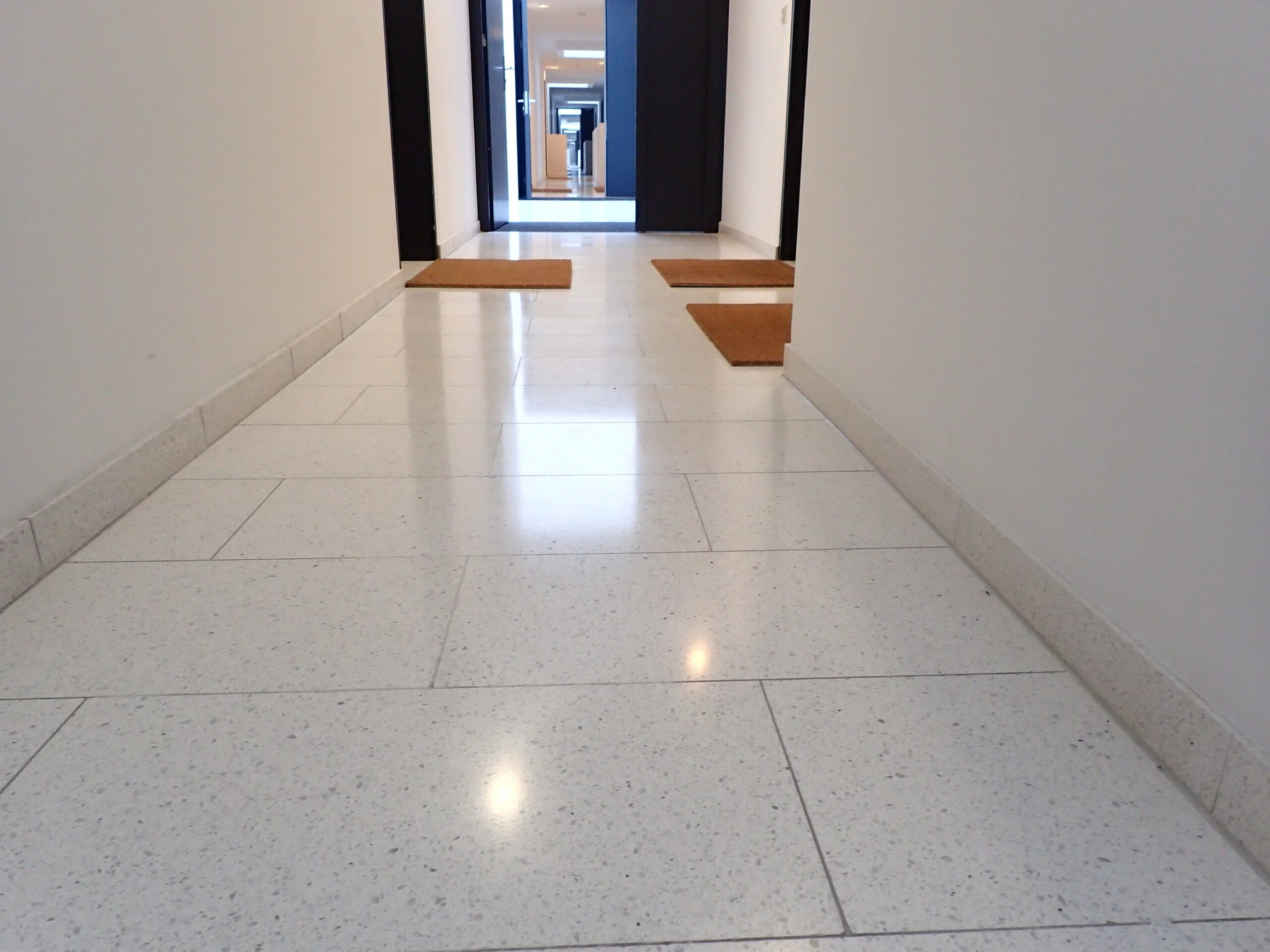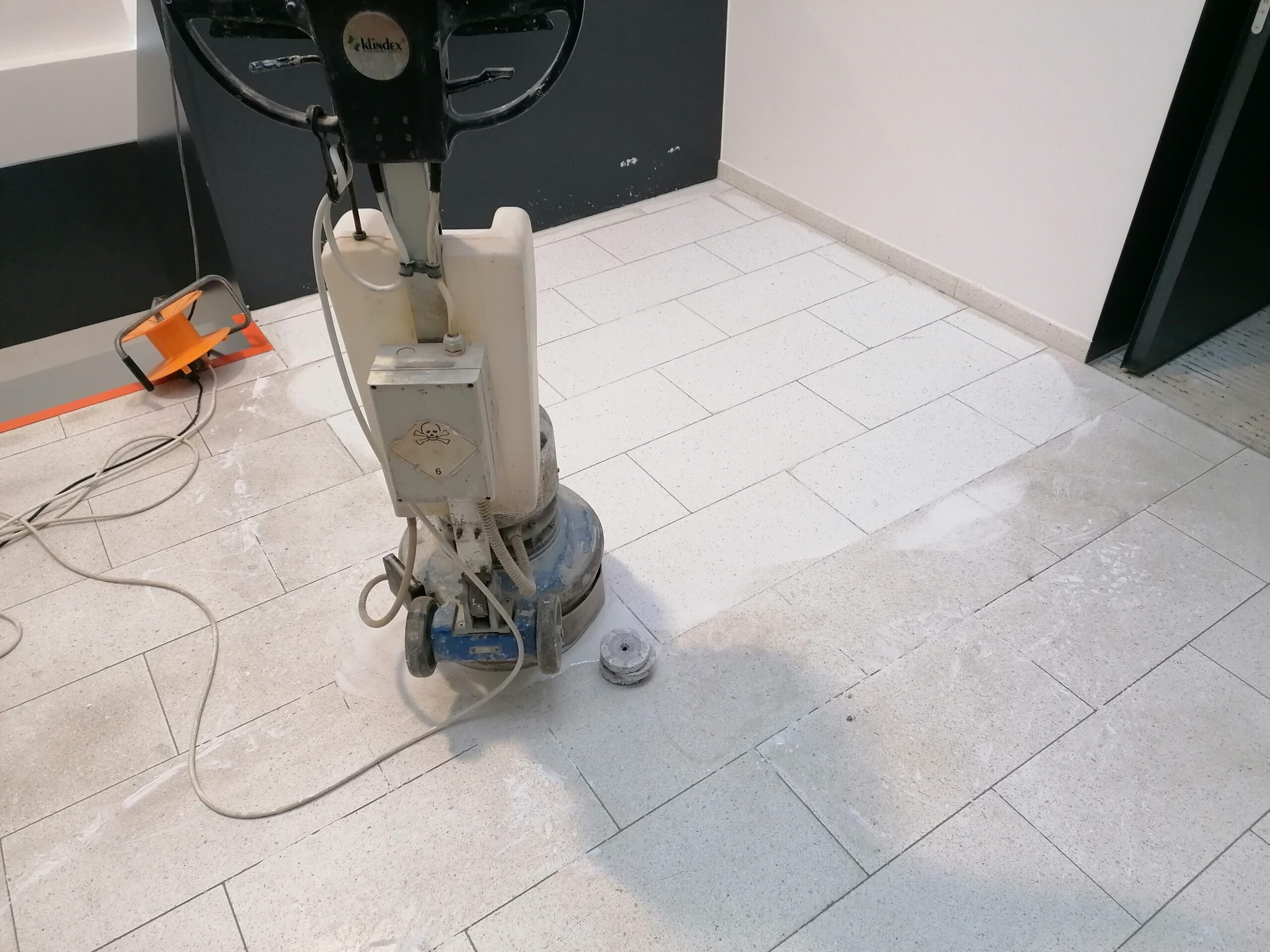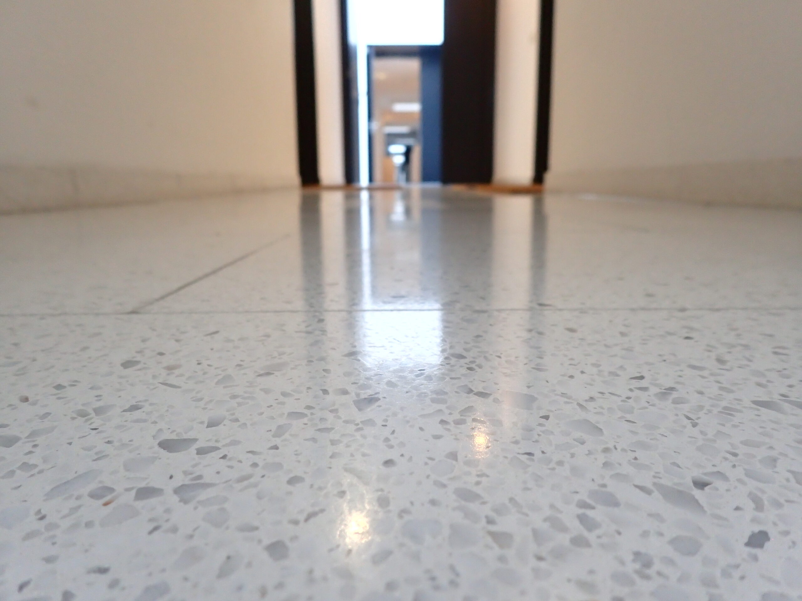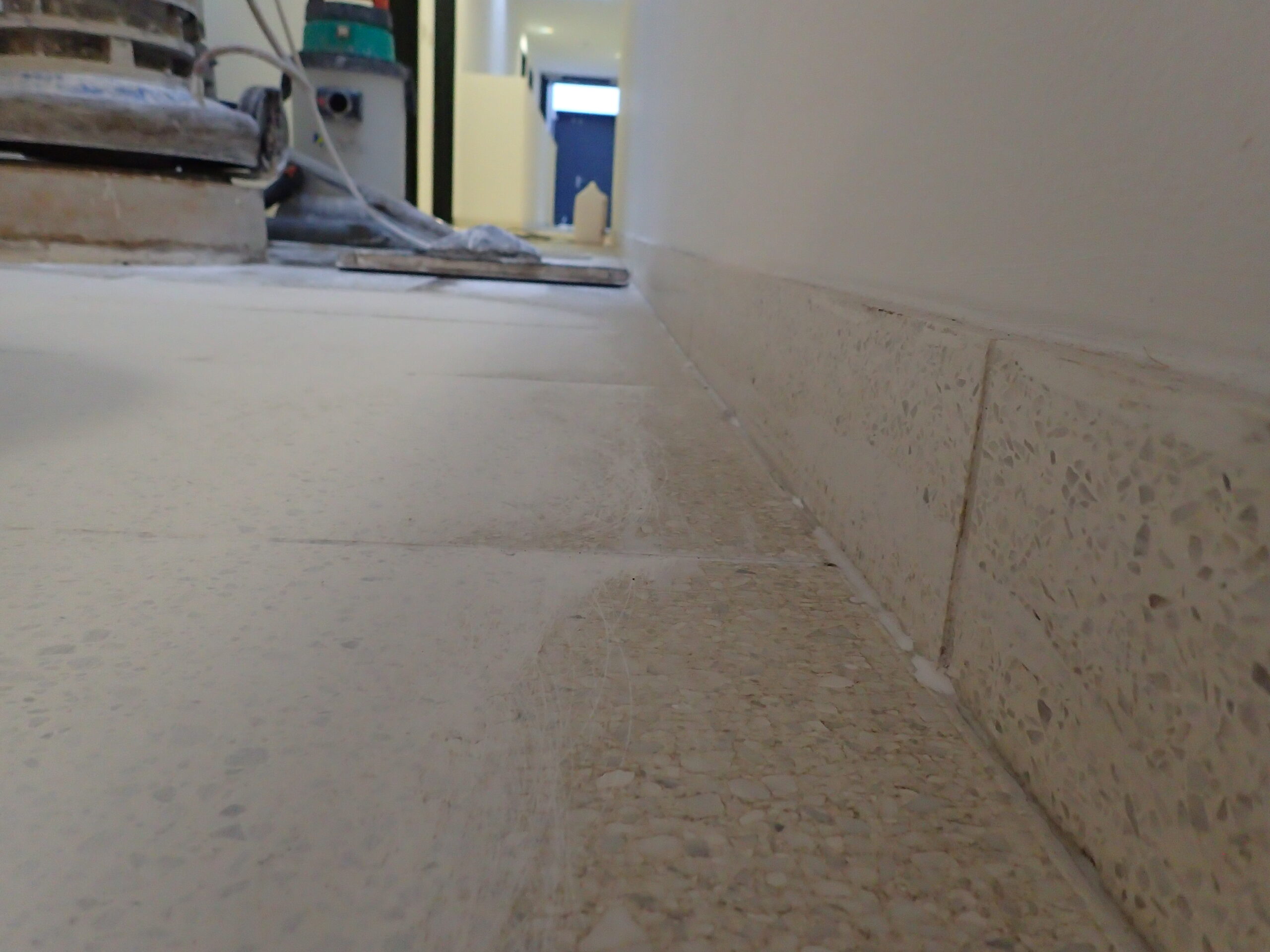 Pro SVJ Šaldova 1 jsme zrealizovali renovaci měkké teracove dlazby v celkové ploše 1200m2. Byli jsme osloveni správcovskou firmou ohledně možností renovace teracove dlažby v karlinskem bytovem domě která po pouhých 6 letech provozu vykazovala značné poškození povrchu a nerovnosti jednotlivých částí  teracové dlažby. Teracovou dlažbu bylo nutné nejdříve kompletně srovnat tak, aby všechny její části byly ve sté výšce. To bylo provedeno za pomoci diamantových segmentů a planetových brusek. Následně jsme pomocí planetových brusek Klindex a dimantových segmentů s odstupňovanou abrazivitou vyleštili povrch do požadovaného vysokého lesku. Po celkovém vyschnutí plochy jsme povrch opakovaně zpevňovali pomocí zpevňujícího vosků Bellinzoni Dural Max a Bellinzoni Dural Brill. Celá ošetřená plocha byla nakonec znovu rozleštěna pomocí diamantových padů. Výsledek je patrný v přiložené galerii.