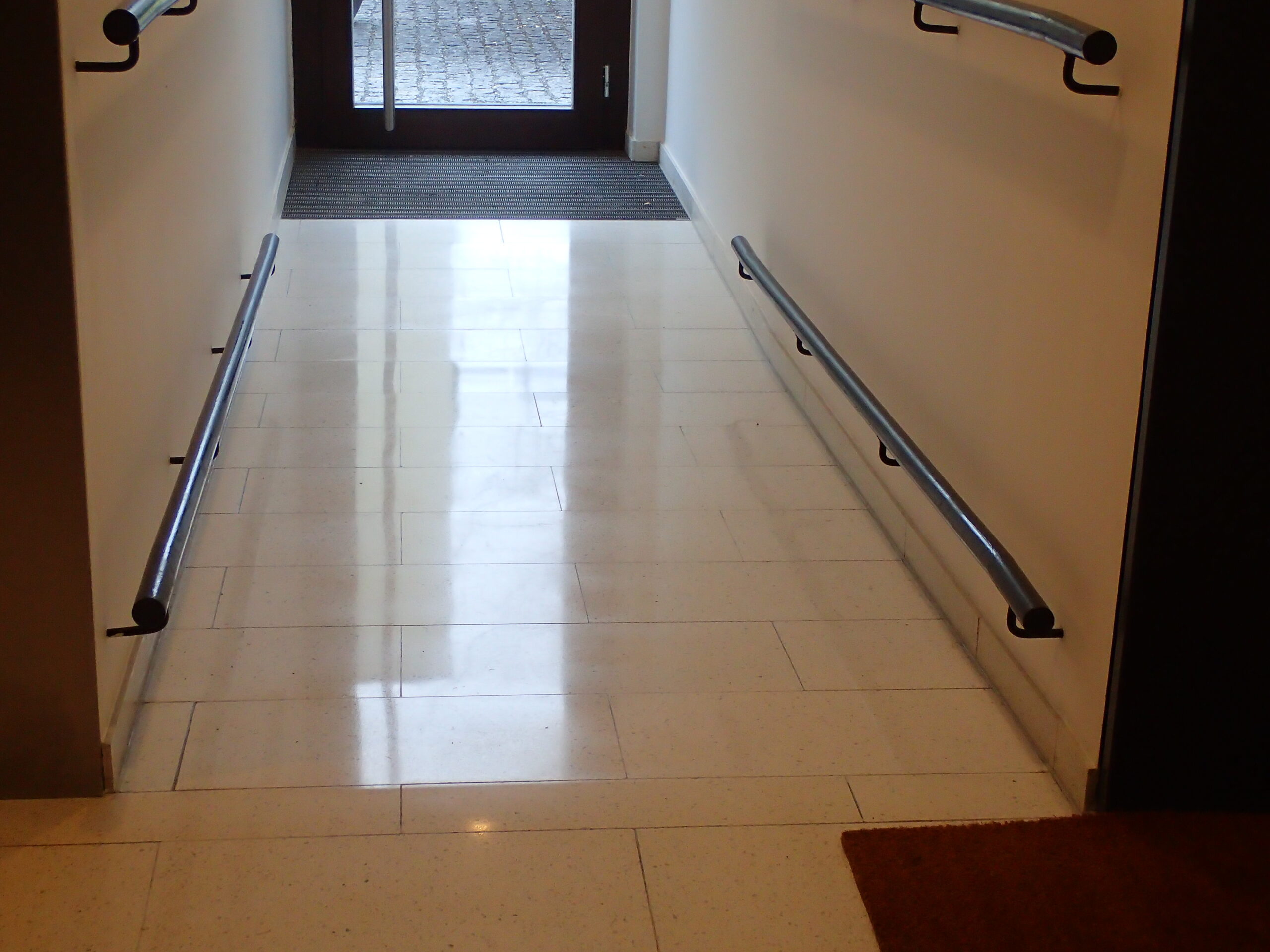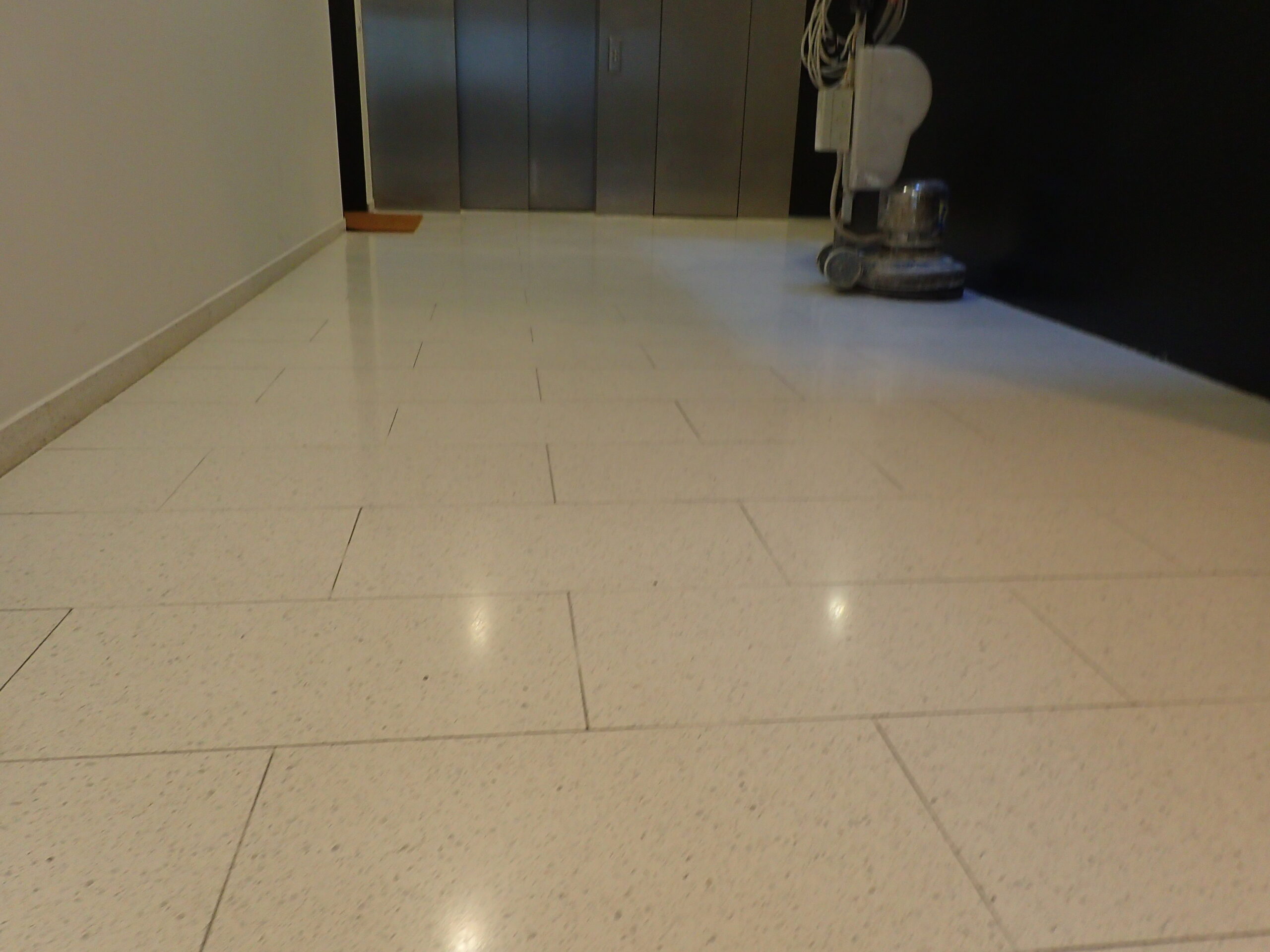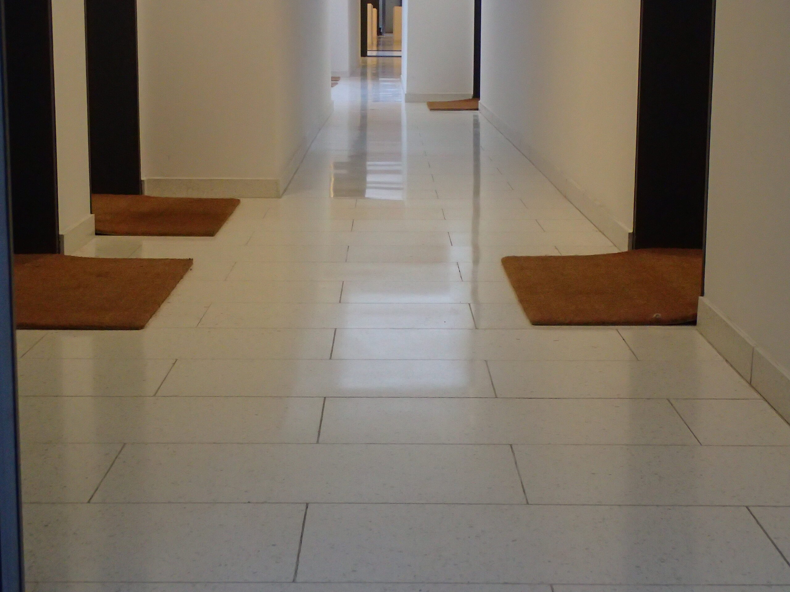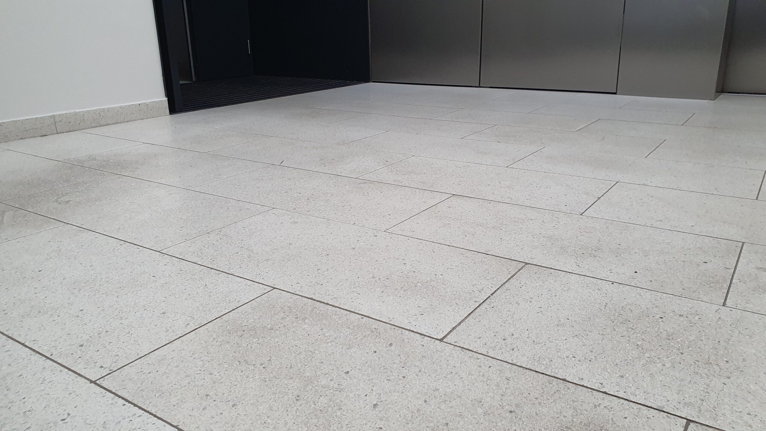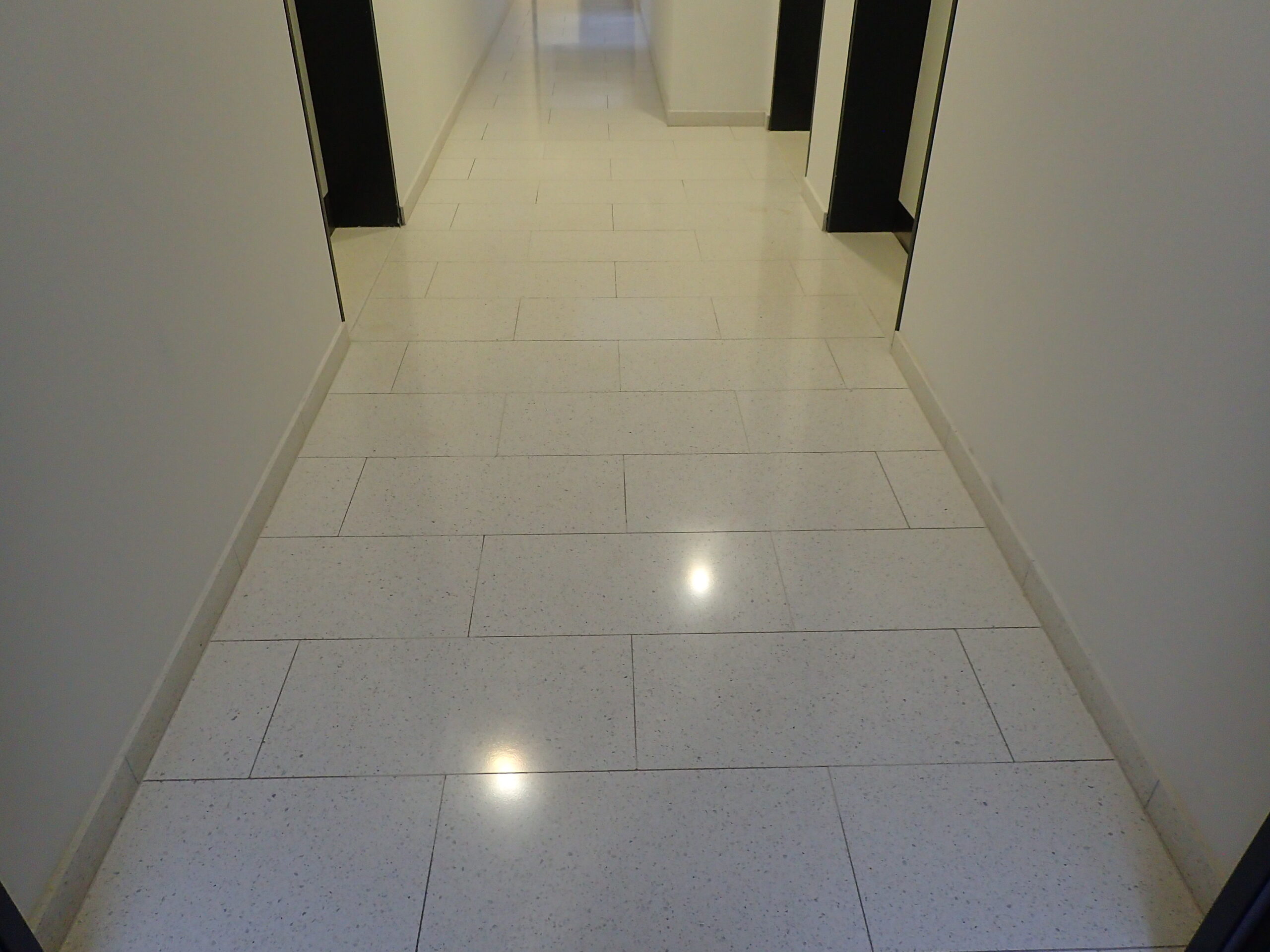 Pro SVJ Šaldova 1 jsme zrealizovali renovaci měkké teracove dlazby v celkové ploše 1200m2. Byli jsme osloveni správcovskou firmou ohledně možností renovace teracove dlažby v karlinskem bytovem domě která po pouhých 6 letech provozu vykazovala značné poškození povrchu a nerovnosti jednotlivých částí  teracové dlažby. Teracovou dlažbu bylo nutné nejdříve kompletně srovnat tak, aby všechny její části byly ve sté výšce. To bylo provedeno za pomoci diamantových segmentů a planetových brusek. Následně jsme pomocí planetových brusek Klindex a dimantových segmentů s odstupňovanou abrazivitou vyleštili povrch do požadovaného vysokého lesku. Po celkovém vyschnutí plochy jsme povrch opakovaně zpevňovali pomocí zpevňujícího vosků Bellinzoni Dural Max a Bellinzoni Dural Brill. Celá ošetřená plocha byla nakonec znovu rozleštěna pomocí diamantových padů. Výsledek je patrný v přiložené galerii.