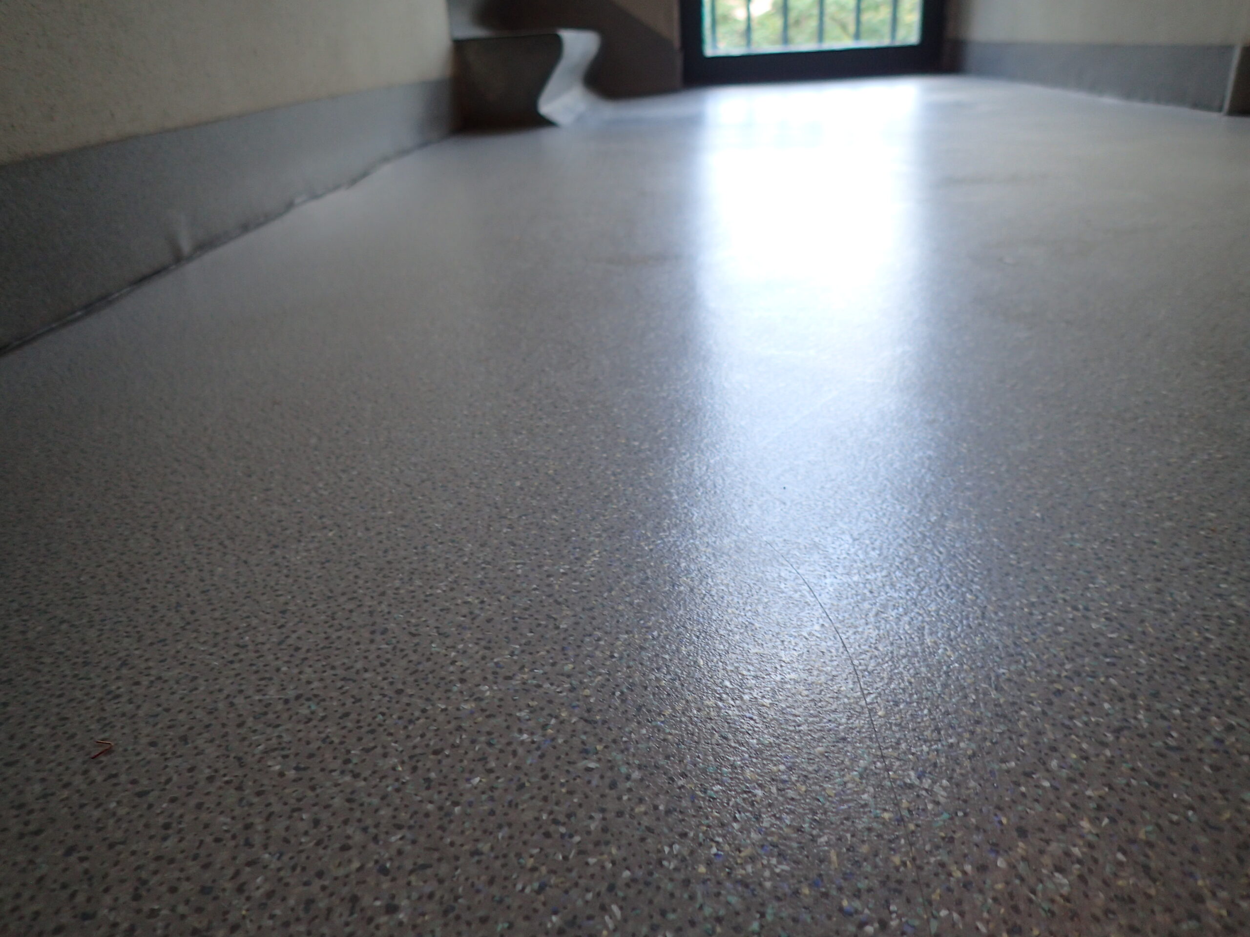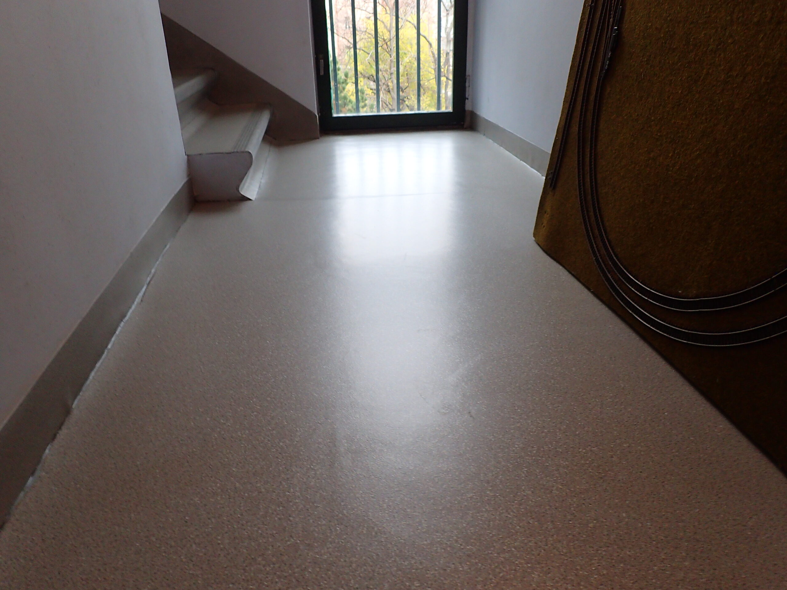 Pro SVJ na adrese Štefánikova 24 jsme zrealizovali čištění, sanaci a aplikaci PU polyuretanové tvrdé ochranné vrstvy ve společných prostorech panelového domu v celkové ploše 250m2 a to během 3dní. Původní 30let stará elastická podlahovina byla bez zásadnější údržby a díky velkému provozu ve značně zbědovalém stavu. Celkovou metráž 250m2 jsme nejdříve kompletně odmastili a sanovali. Následně byla aplikována PU polyuretanová tvrdá ochranná vrstva včetně přísady Duro plus na další zvýšení odolnosti proti oděru. Výsledek naší práce si můžete prohlédnout v galerii.