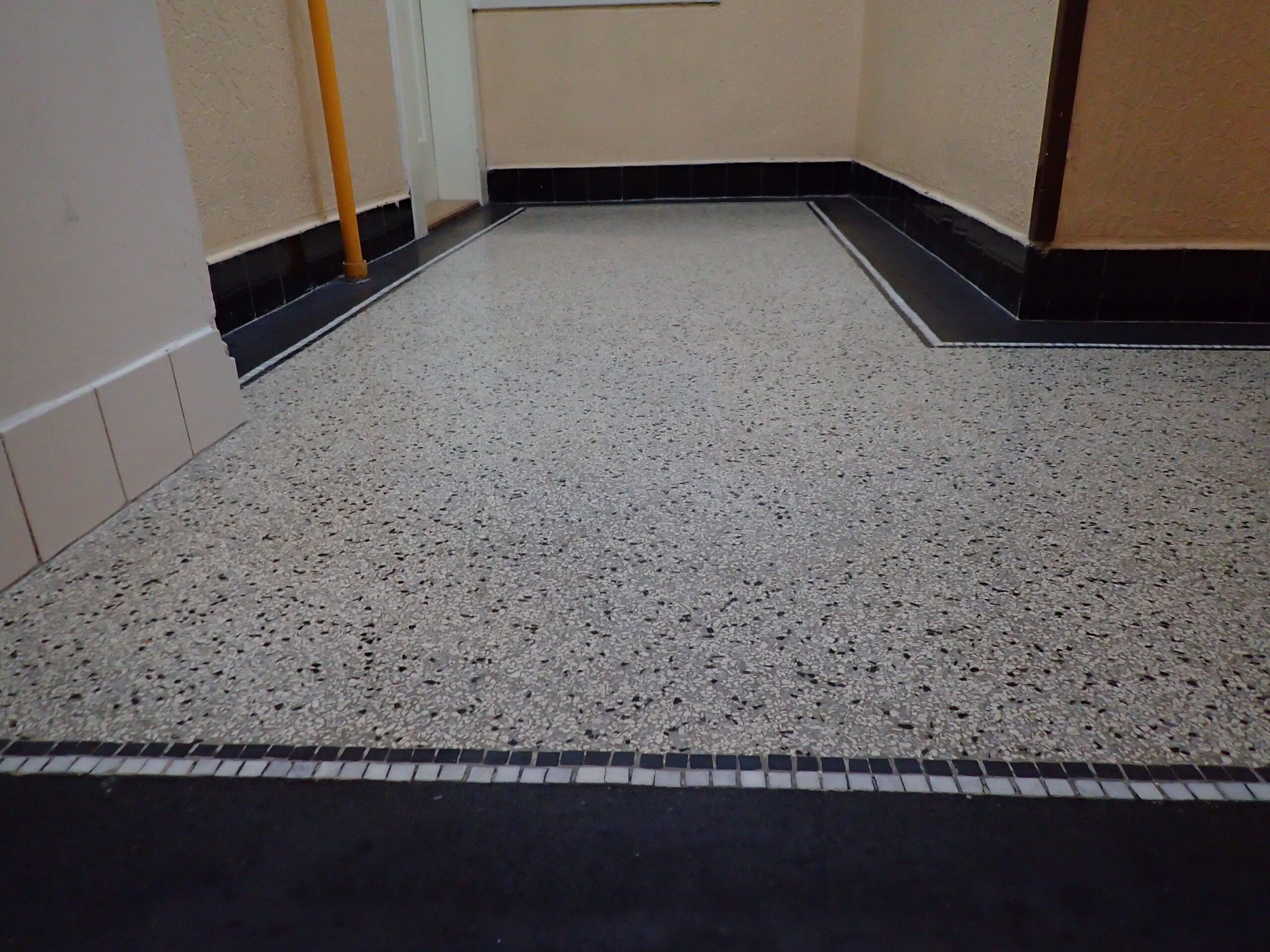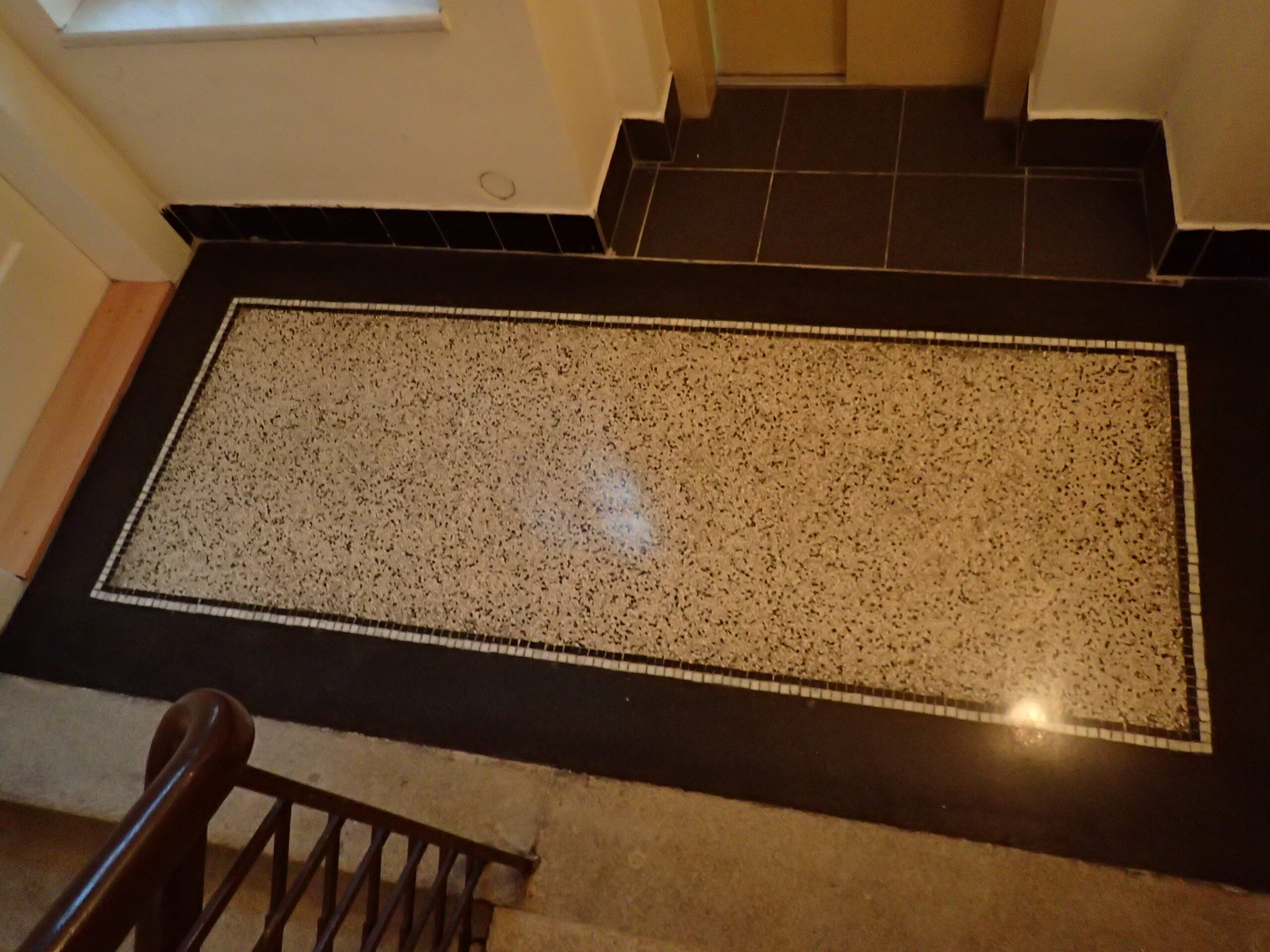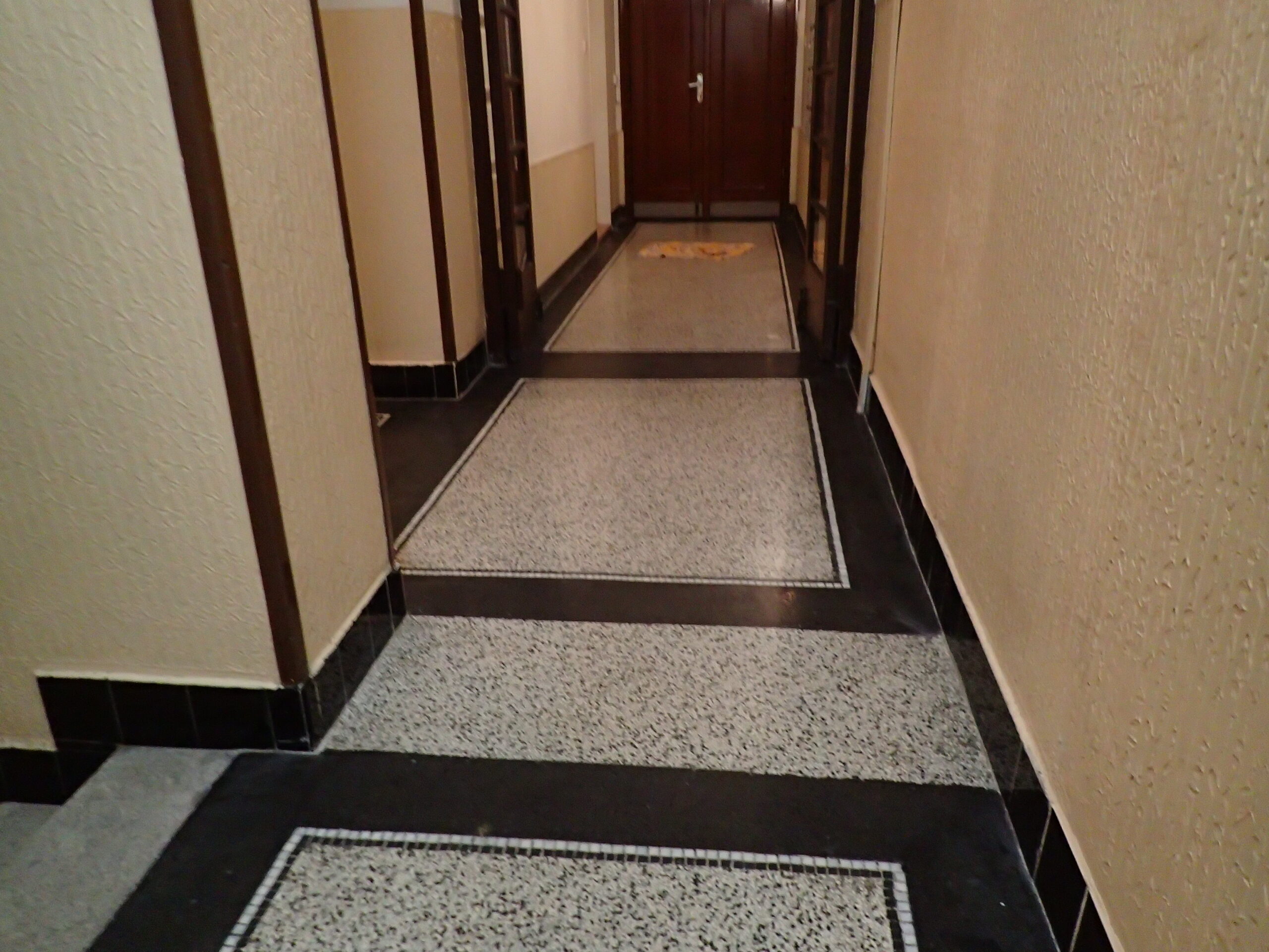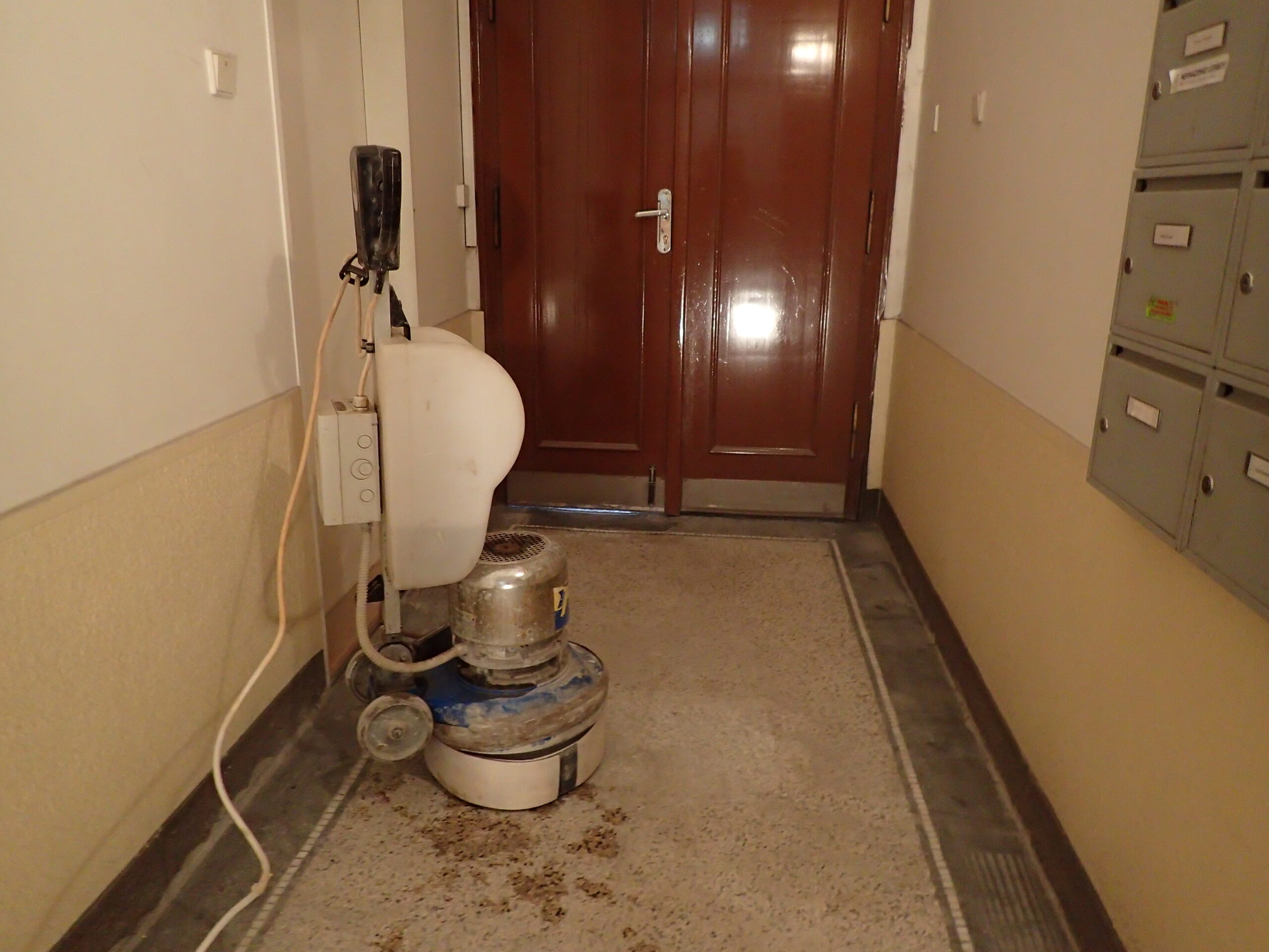 Pro SVJ v domě na adrese Vršovická 33 jsme zrealizovali chemické čištění žulových schodů a opravy včetně renovace povrchu terrazzových ploch ve společných částech domu. Protože bylo terrazzo silně poškozeno po odstranění elektrických sítí a plynových trubek bylo nutné v domě provést velké množství oprav. V přízemí domu byl odstraněn kovový rám bývalé a již nefunkční železné rohože. Po provedení všech oslav bylo terrazzo kompletně vystěrkováno, přebroušeno a vyleštěno do požadovaného stupně lesku. Žulové schody nebyly od stavby domu nikdy čištěny a po několika desítkách let byl jejich stav velmi zanedbaný. Pomocí čistící chemie Bellinzoni a speciálního kotoučového stroje Klindex jsme jednotlivé nášlapnice i podstupnice žulového schodiště kompletně vyčistili až na čistý žulový povrch. Zrenovovaný povrch terrazzové plochy a vyčištěného žulového schodiště byl na závěr důkladně penetrován odpovídající penetrací Bellinzoni Idea HP a Bellinzoni Dural Max / Brill. Výsledky naší práce jsou k prohlédnutí v přiložené fotogalerii.