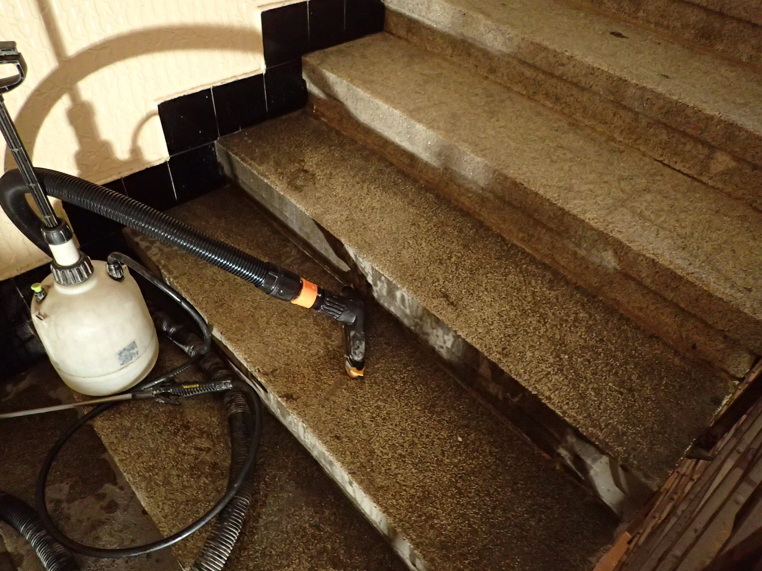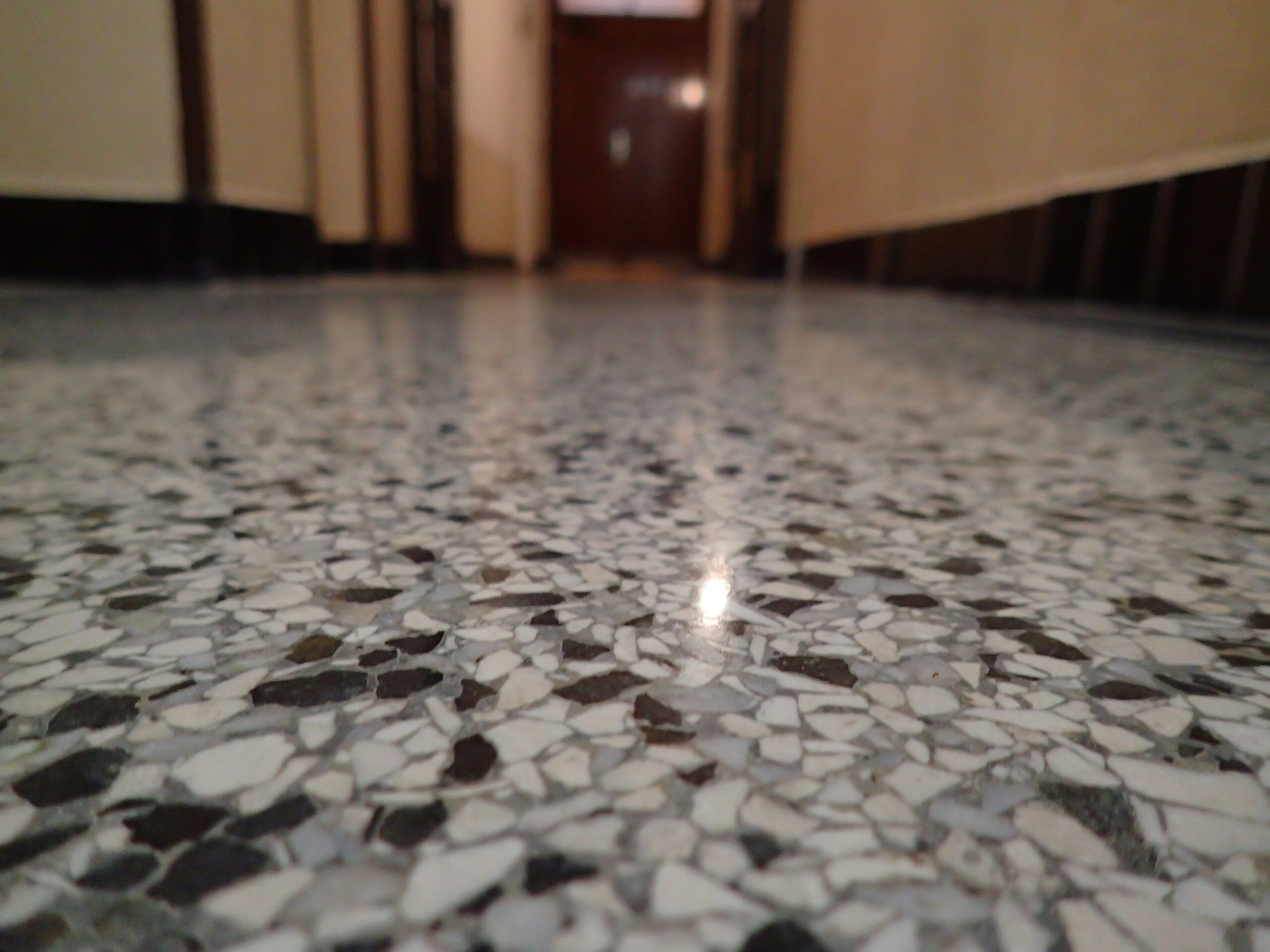 Vršovická 33, Praha, čištění žulových schodů a renovace terrazza 210m2