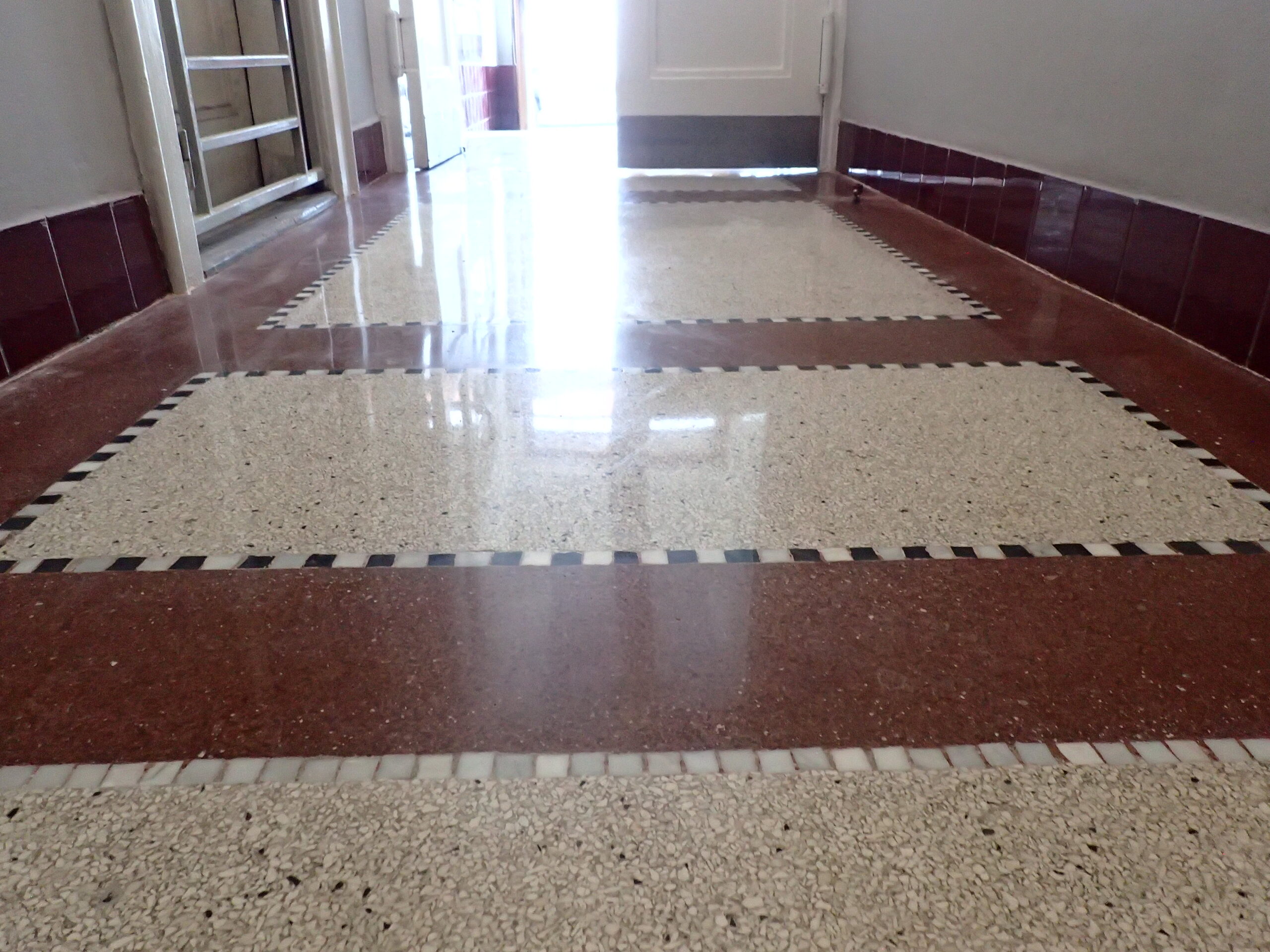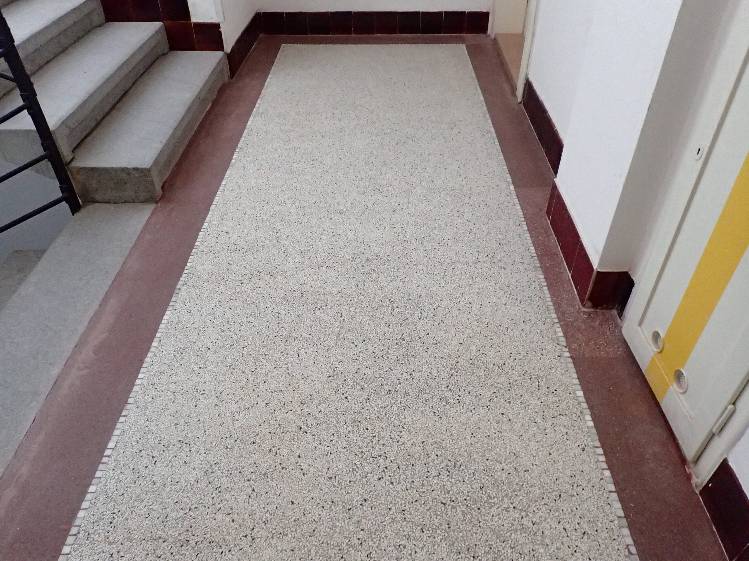 V domě Wuchterlova 14 jsme zrealizovali chemické čištění starých žulových schodů a renovaci terasové plochy ve společných částech činžovního domu. V domě nikdy nebyly žulové schody nikdy čištěny a terasová plocha prošla cca před 20 lety v rámci větší rekonstrukce domu nepovedenou renovací povrchu. Teraso bylo znehodnoceno velkým množstvím škrábanců od ručních brusek kterými se stavební firma pokoušela teraso přebrousit. Žulové schody byly naštěstí v původním stavu bez předchozího zásahu. V první fázi jsme pomocí čistící chemie Bellinzoni vyčistili 12 ramen žulových schodů až na čistý povrch. Po vyčištění schodišťových stupňů jsme nahrubo pomocí planetové brusky a diamantových segmentů zbrousili povrch terrazza. Stranovou bruskou jsme dočistili nerovnosti v krajích, povrch terasa srovnali do roviny a zastěrkovali. Po konečném vyleštění terasové povrchy jsme celou plochu impregnovali zpevňujícím impregnačním syntetickým voskem Bellinzoni Dural Max a povrch žulových schodů jsme naimpregnovali hydrofobní impregnací Bellinzoni Idea HP odolávajícím kapalinám a olejům. Výsledek naší práce si můžete prohlédnout v přiložené fotogalerii.